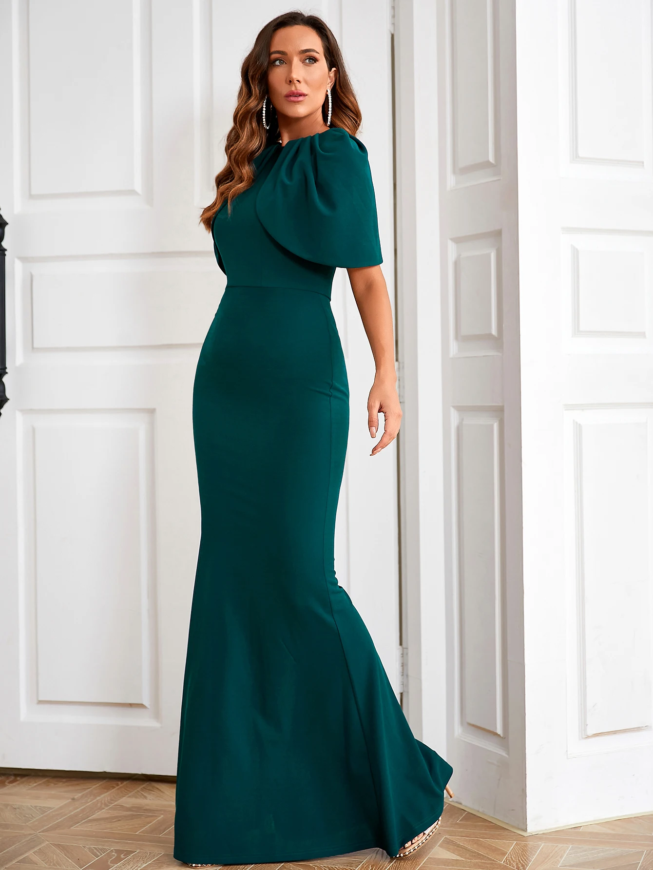 Fleepmart Sexy Round Neck Cape Sleeves Slim Fit Fish Tail Bridesmaid Party Dress
