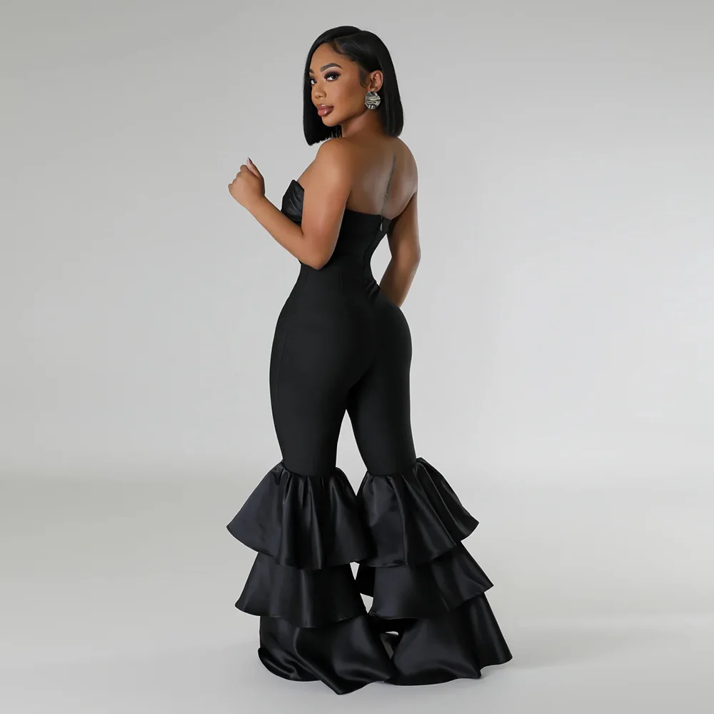 Fleepmart Sexy Ruffle Tube Summer Women Bodysuit Playsuit Elegant Luxury Bodycon Romper Satin Jumpsuit