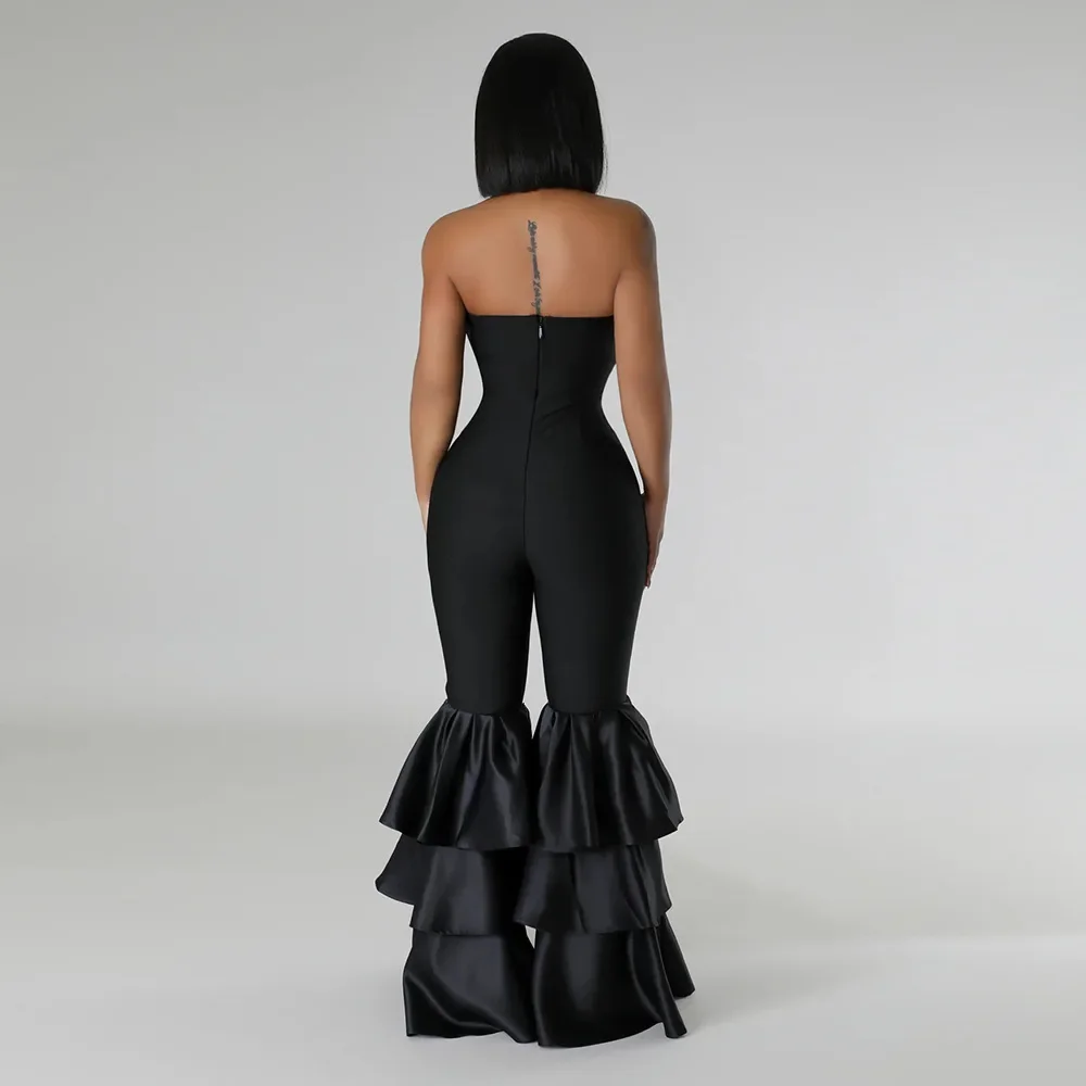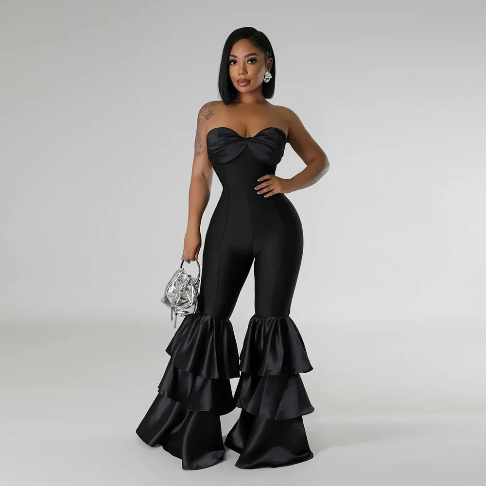 Fleepmart Sexy Ruffle Tube Summer Women Bodysuit Playsuit Elegant Luxury Bodycon Romper Satin Jumpsuit
