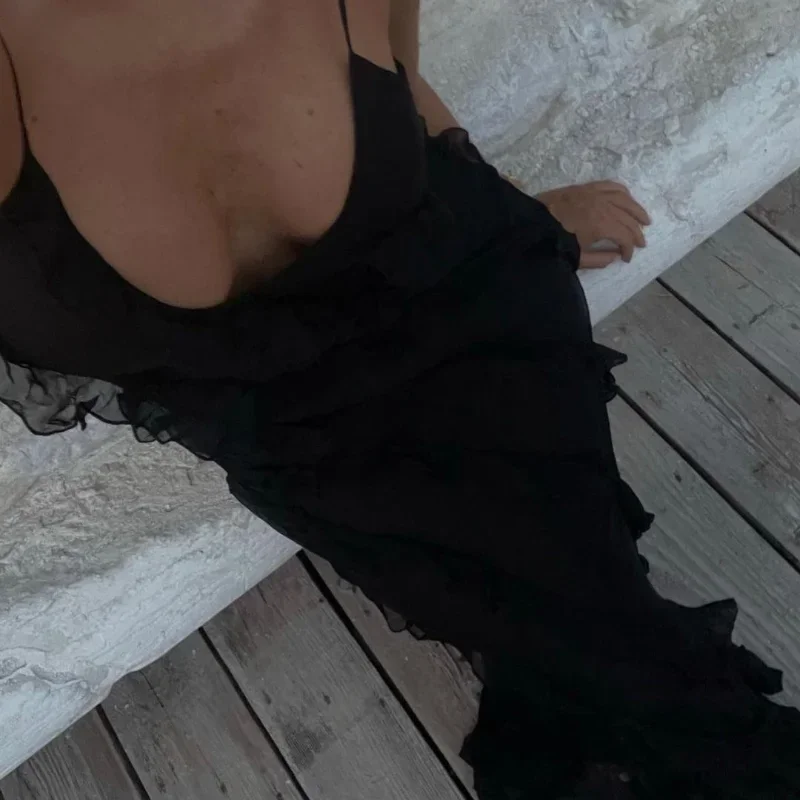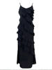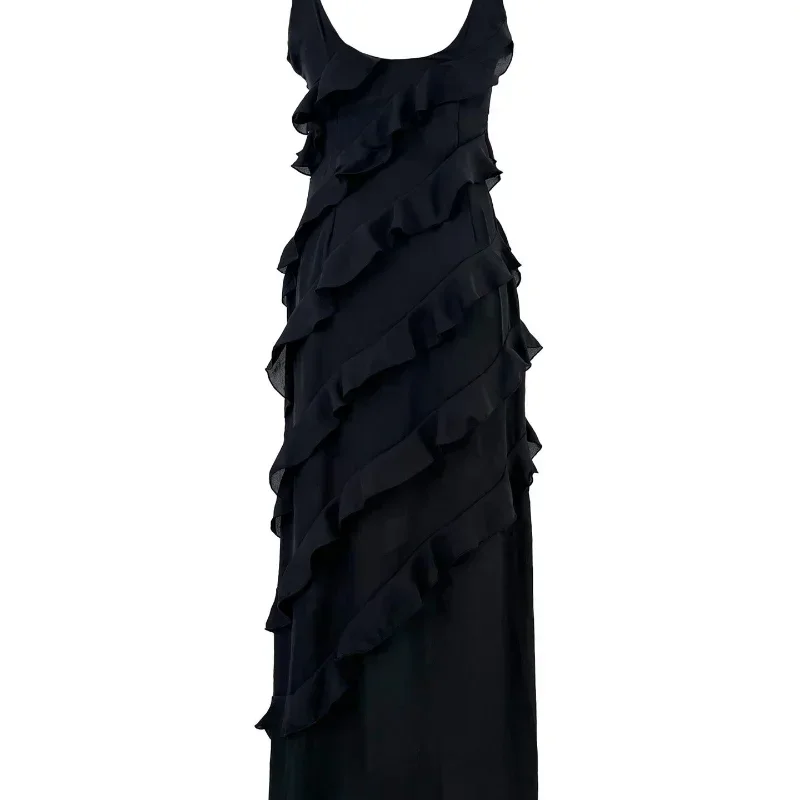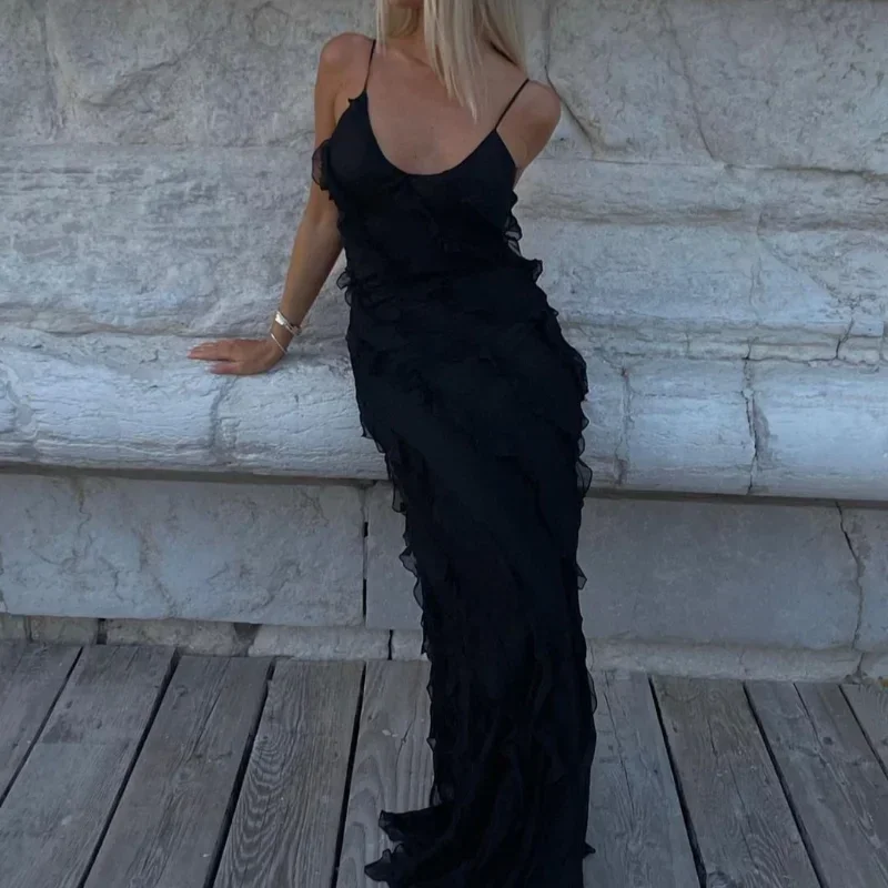 Fleepmart Sexy Ruffles Maxi Robes Women Slim Fit Backless V Neck Long Dresses 2025 New Vacation Beach