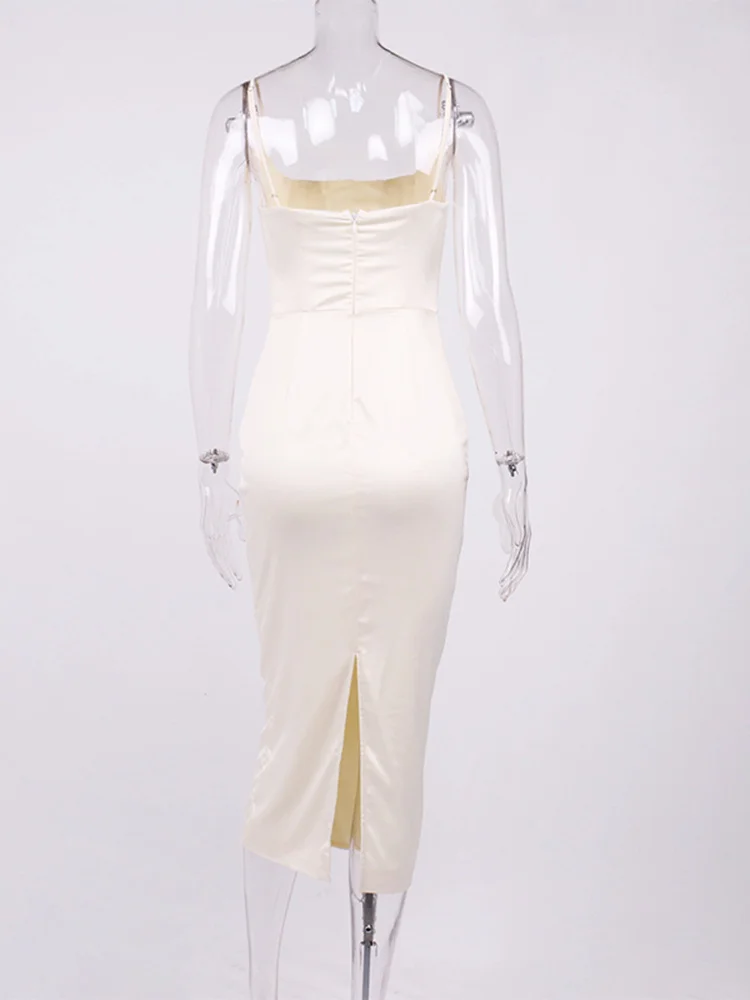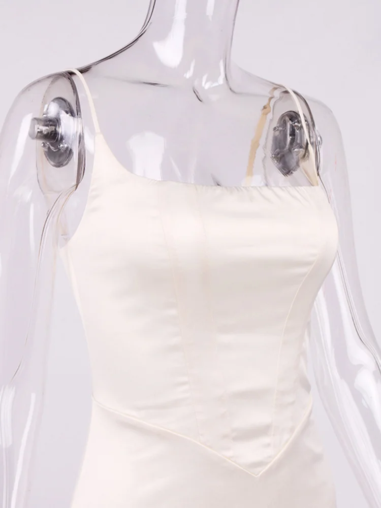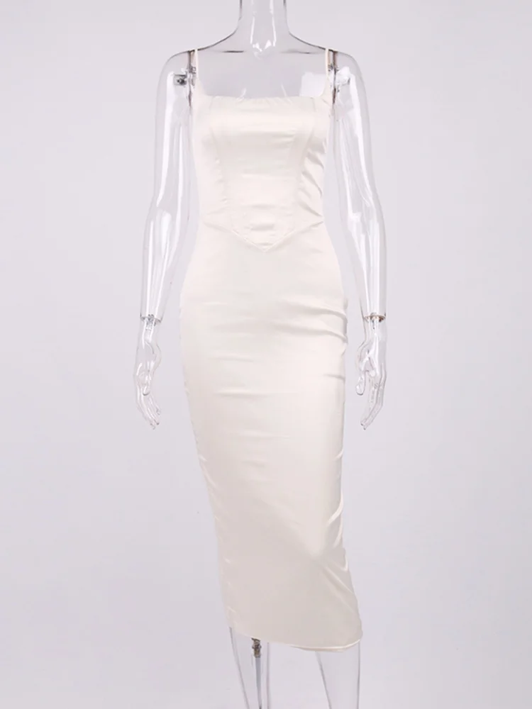 Fleepmart Sexy Satin Maxi Dress Square Collar Split Backless Spaghetti Strap Bodycon Dress Fashion Party Night Black Robes