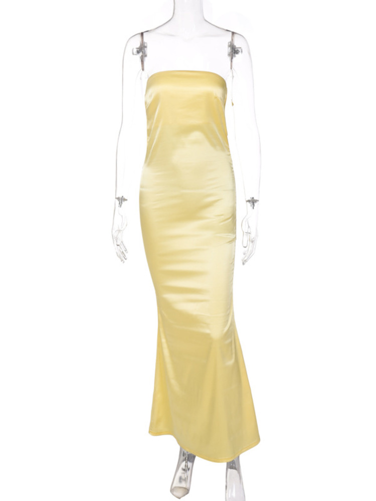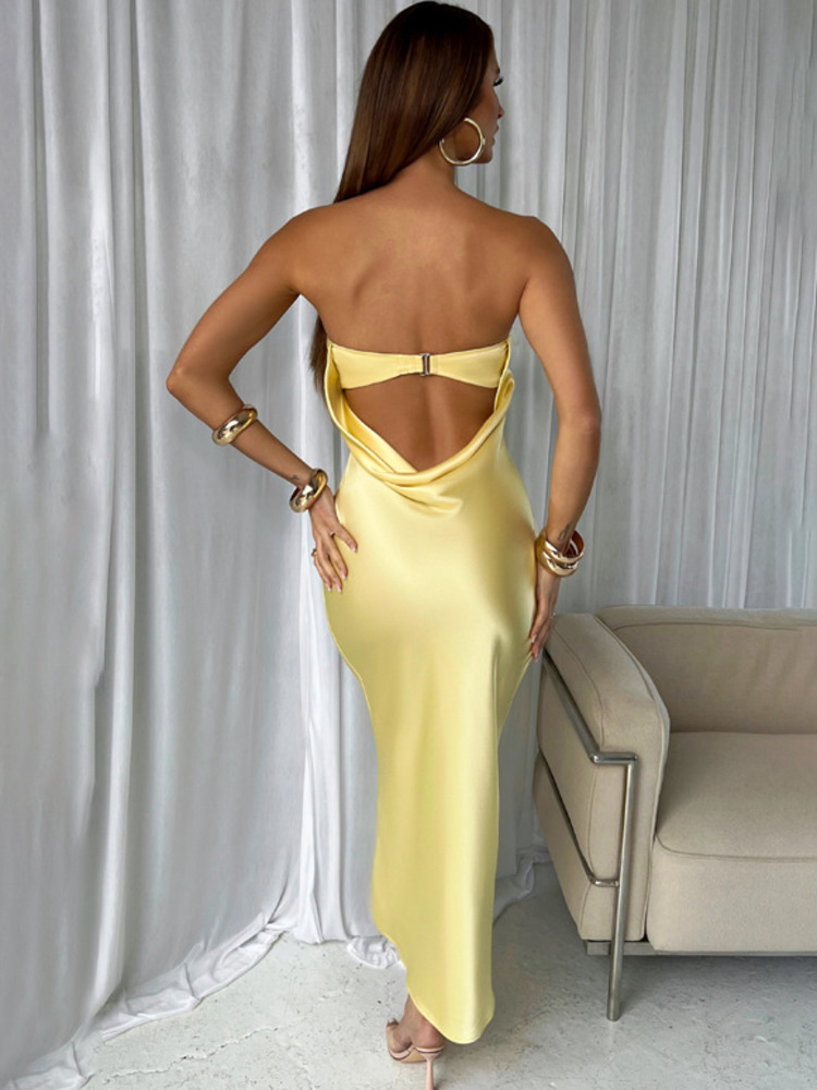 Fleepmart Sexy Satin Off Shoulder Maxi Dress Women Sleeveless Backless Celebrity Long Dress 2023 Spring Summer Lady Vestidos