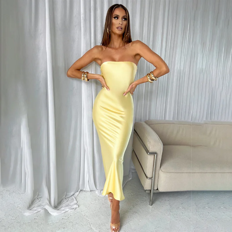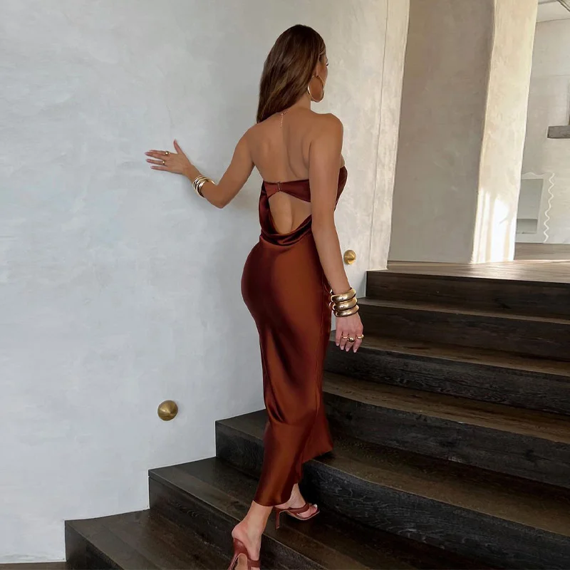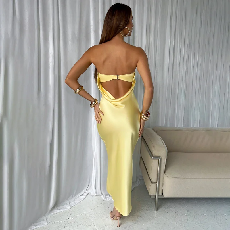 Fleepmart Sexy Satin Off Shoulder Maxi Dress Women Sleeveless Backless Celebrity Long Dress 2023 Spring Summer Lady Vestidos