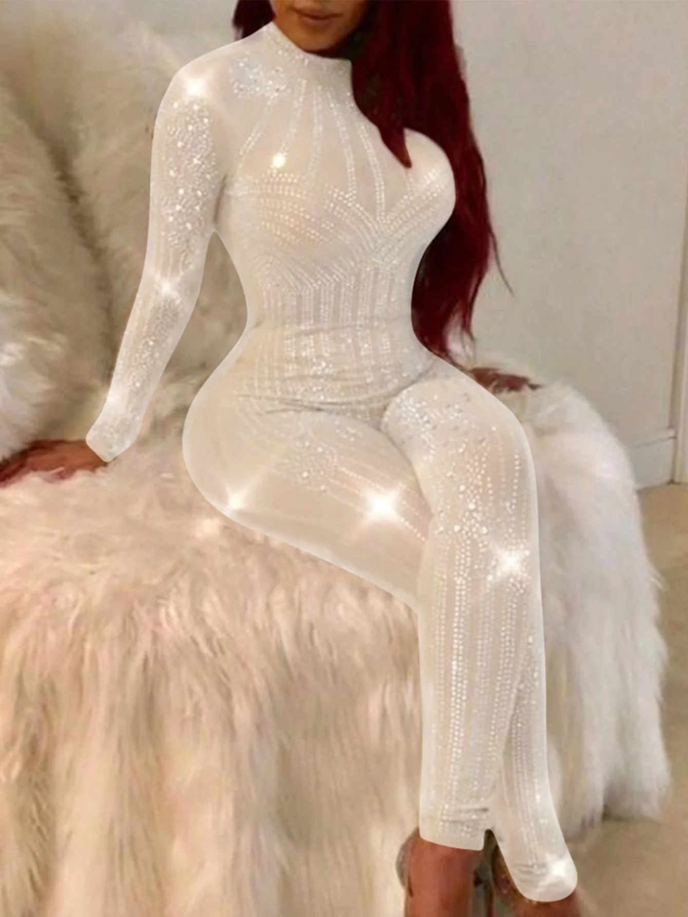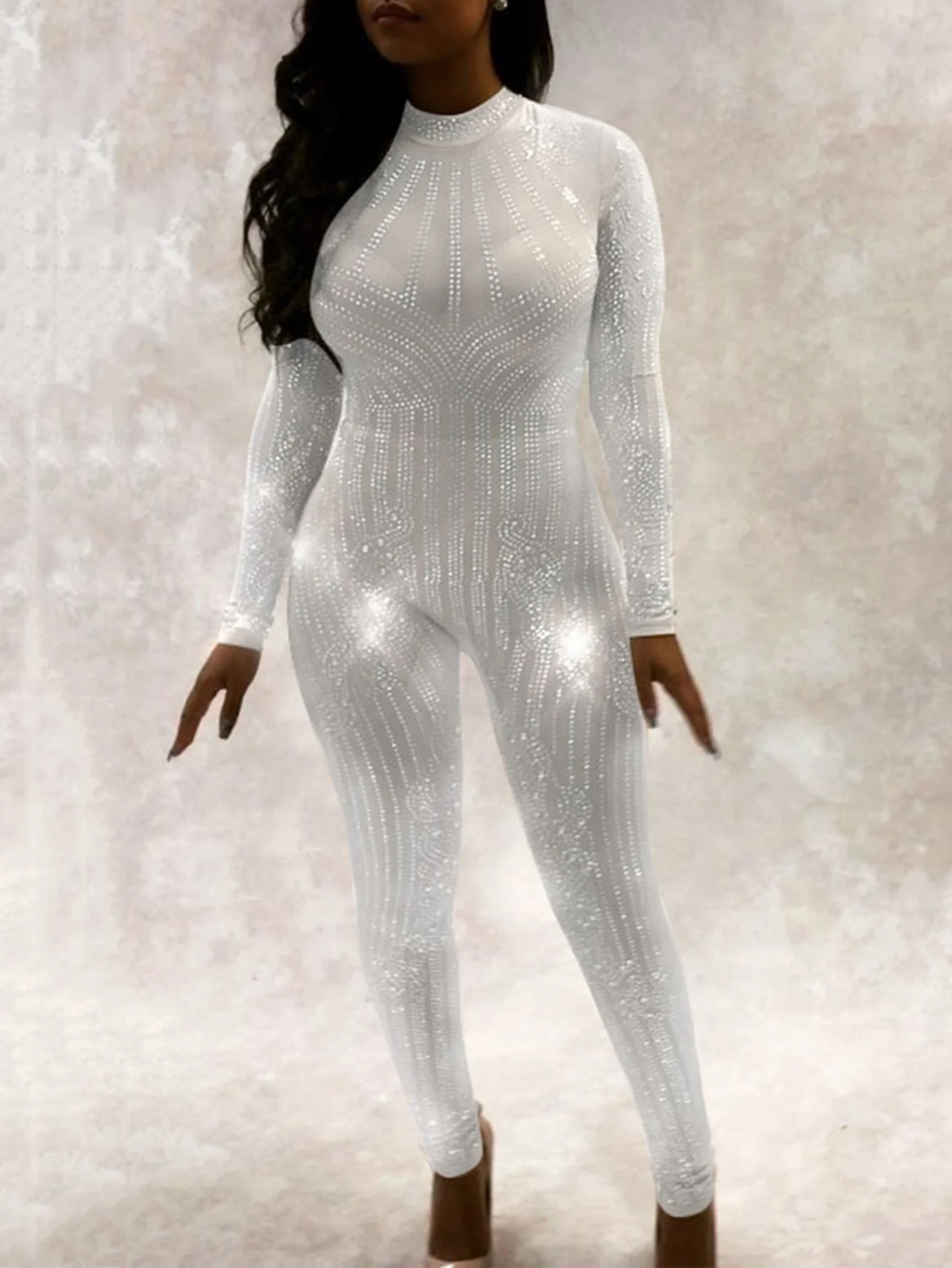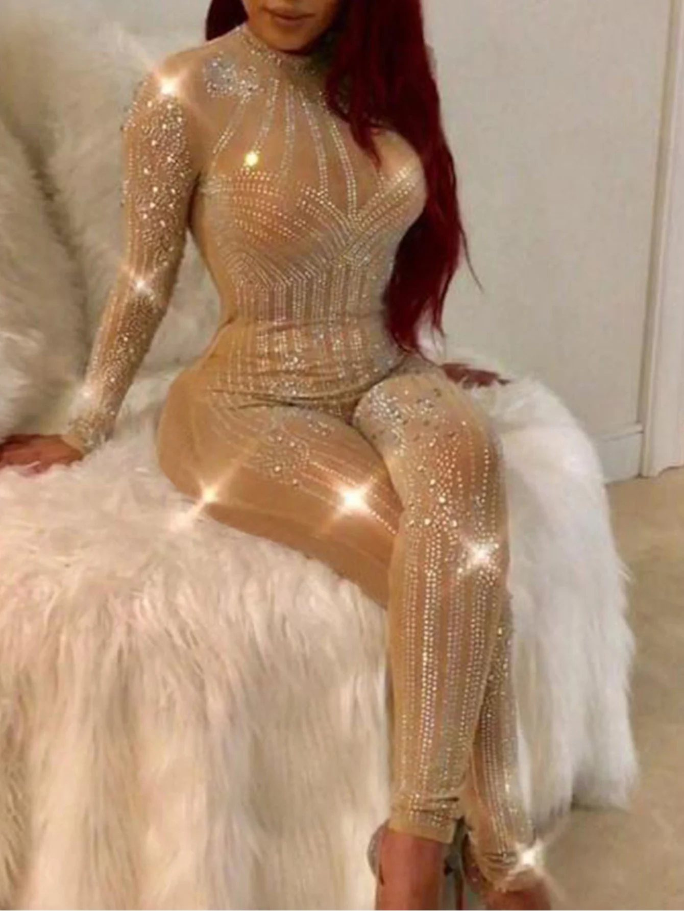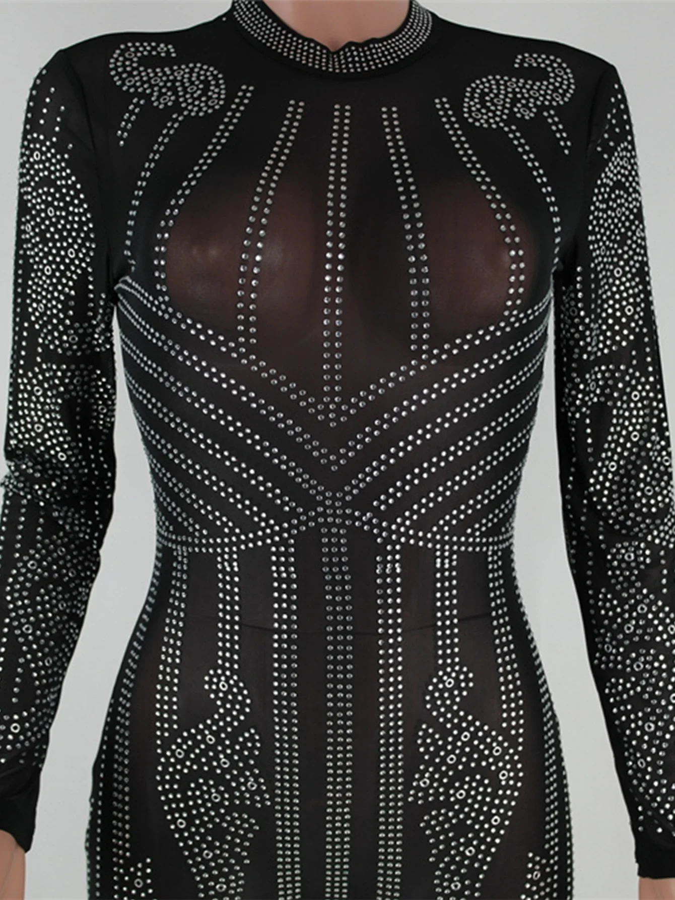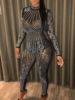 Fleepmart Sexy see through Black mesh Rhinestone jumpsuit women body birthday party jumpsuits one piece club rave outfit bodysuit overalls