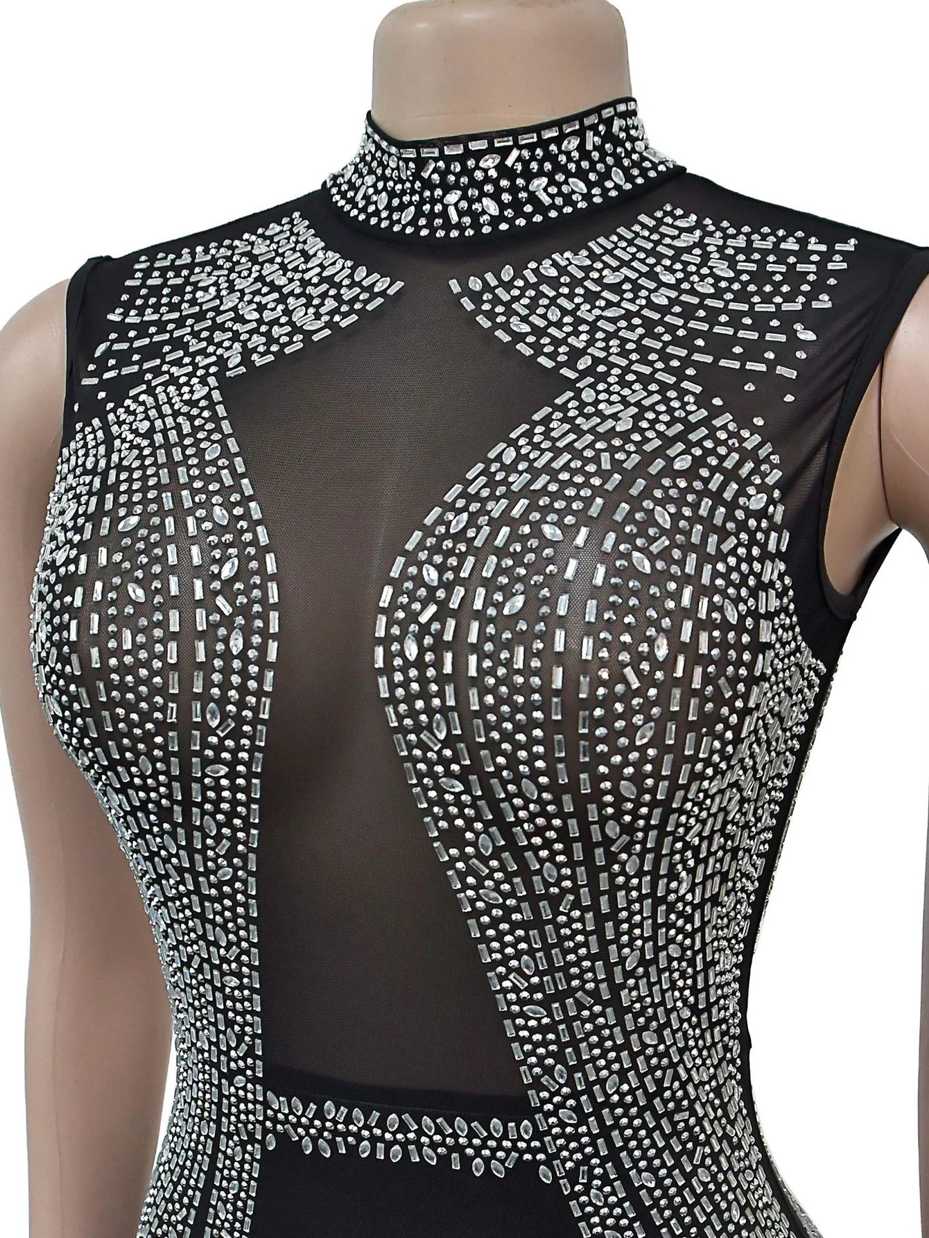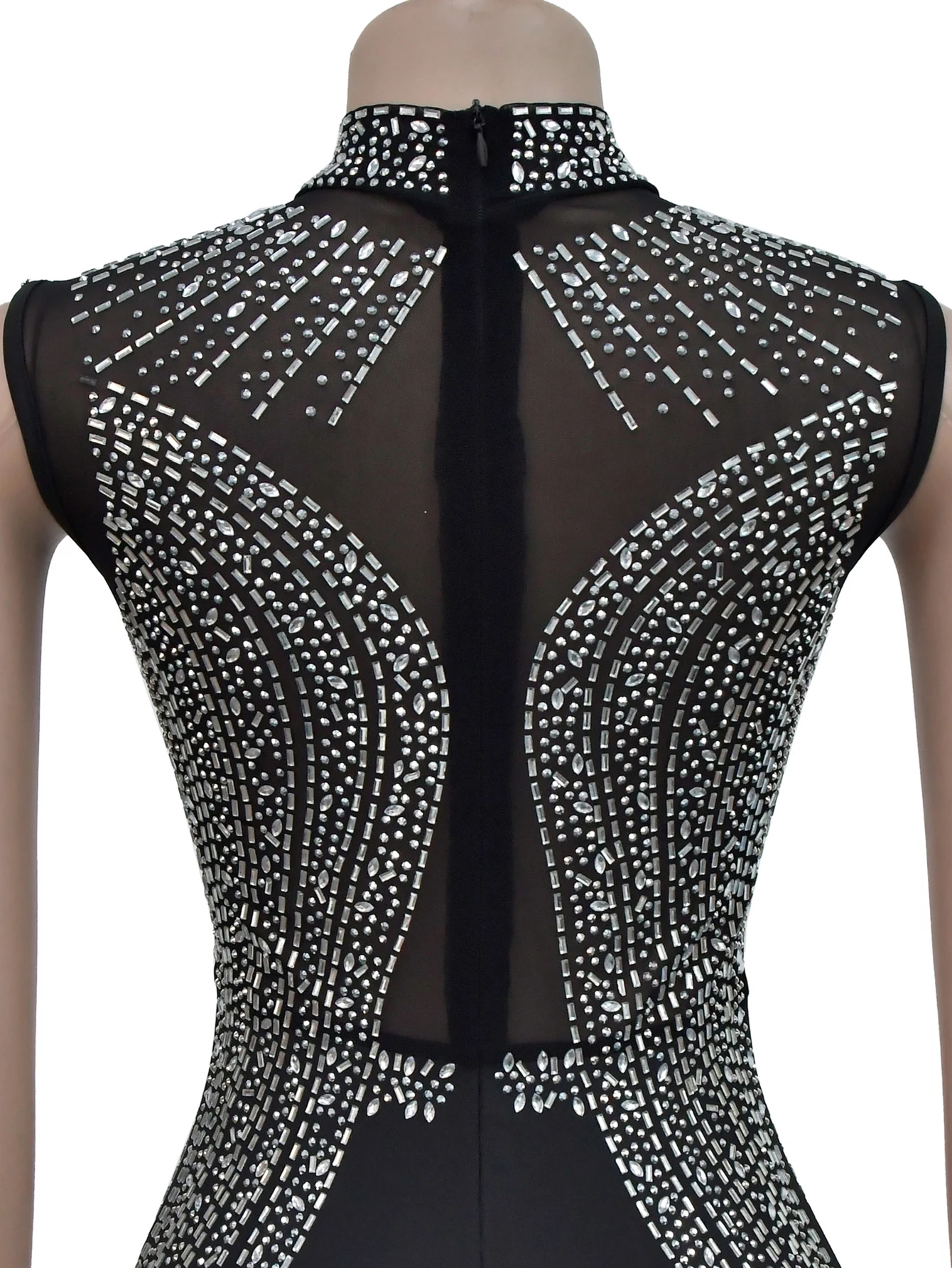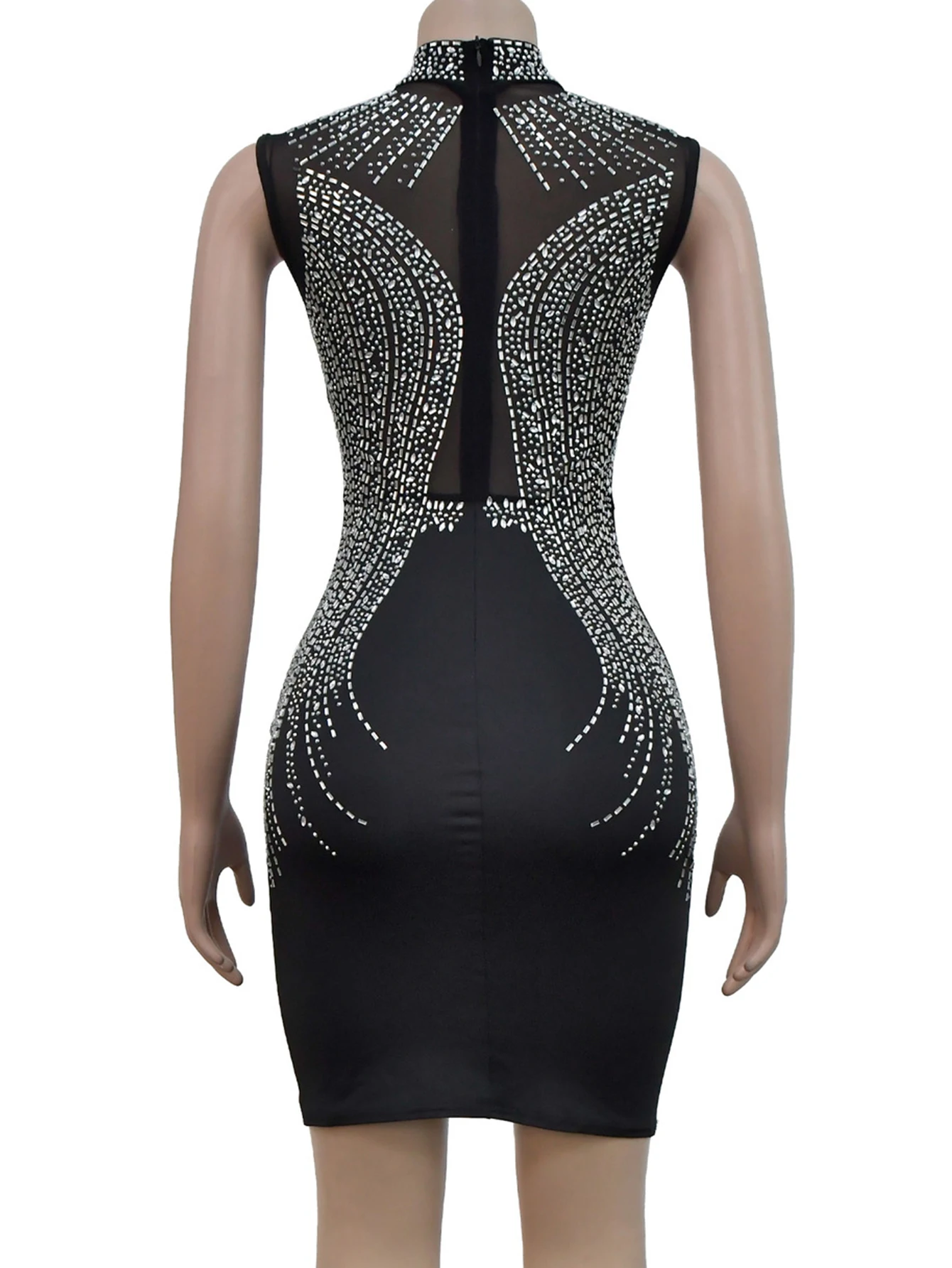 Fleepmart Sexy see through Black Rhinestone mini summer dress women bodycon club festival party dress midi evening prom dresses vestidos