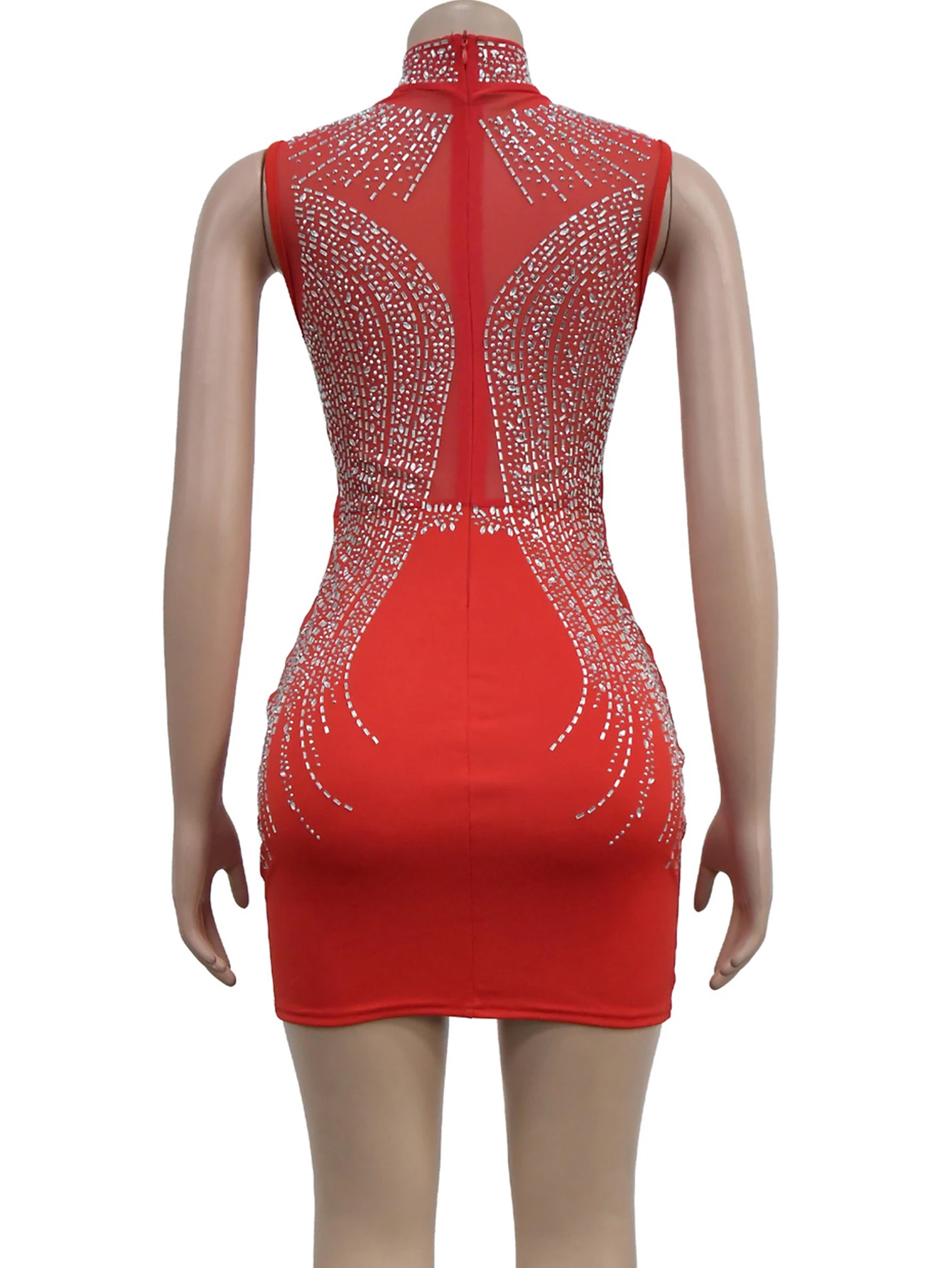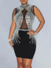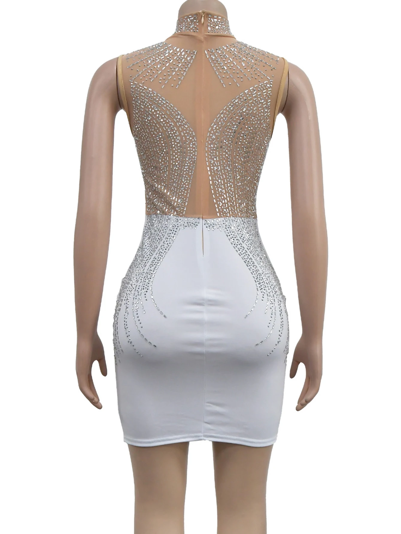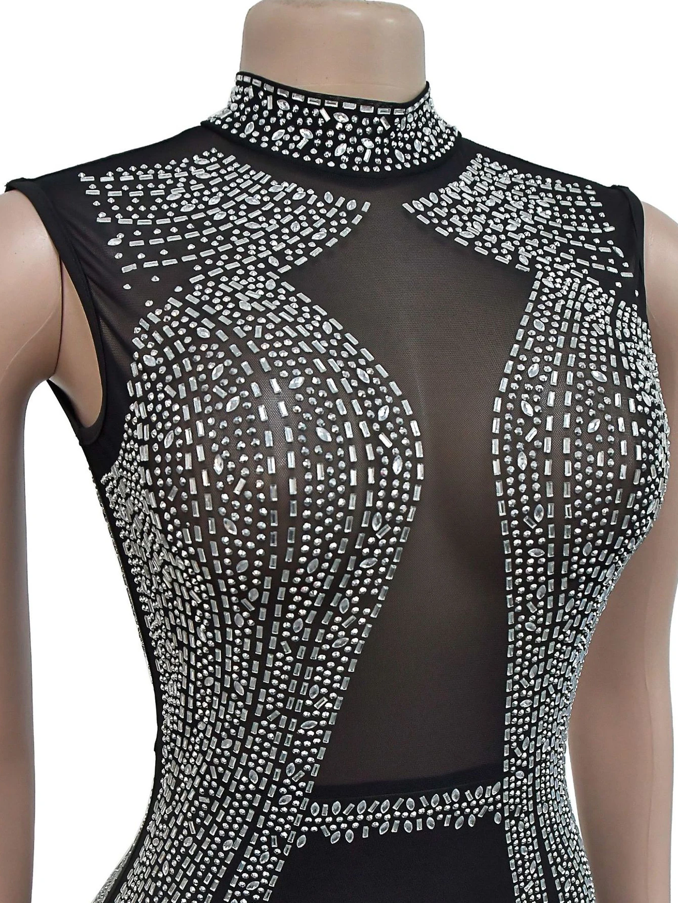 Fleepmart Sexy see through Black Rhinestone mini summer dress women bodycon club festival party dress midi evening prom dresses vestidos