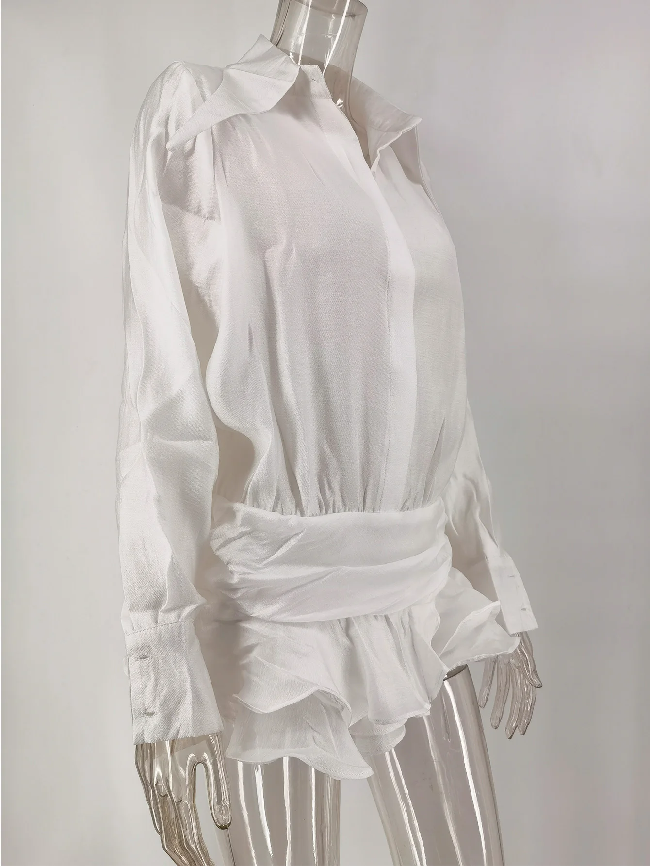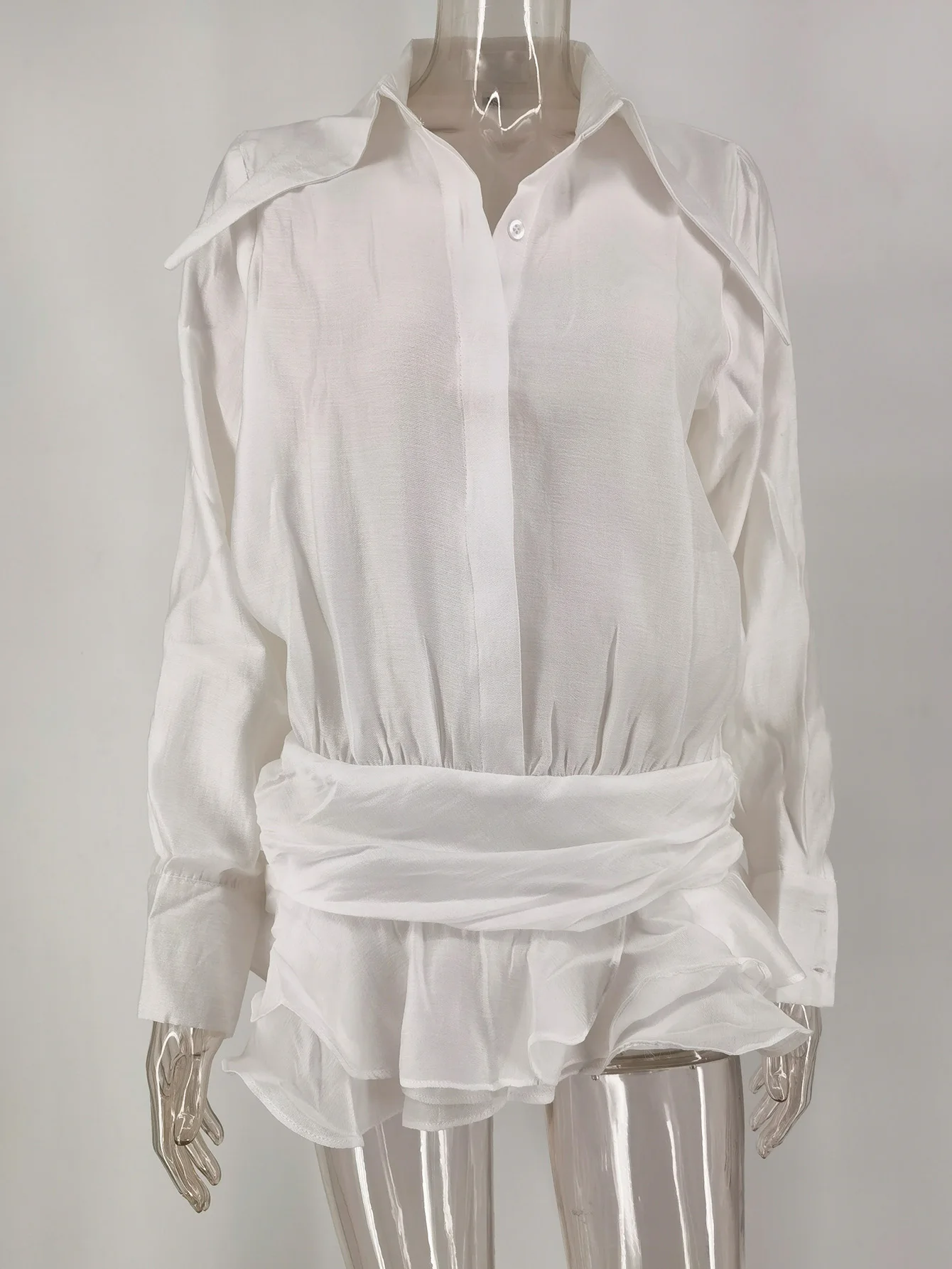 Fleepmart Sexy See through chiffon White summer dress women 2024 elegant party Shirt dress new birthday evening midi short dresses vestido