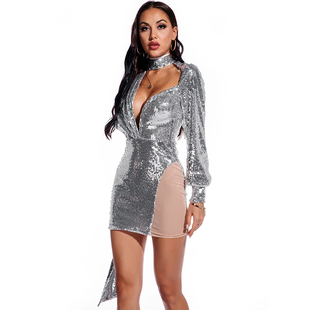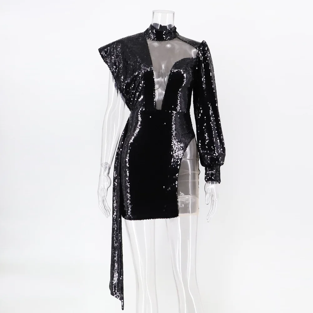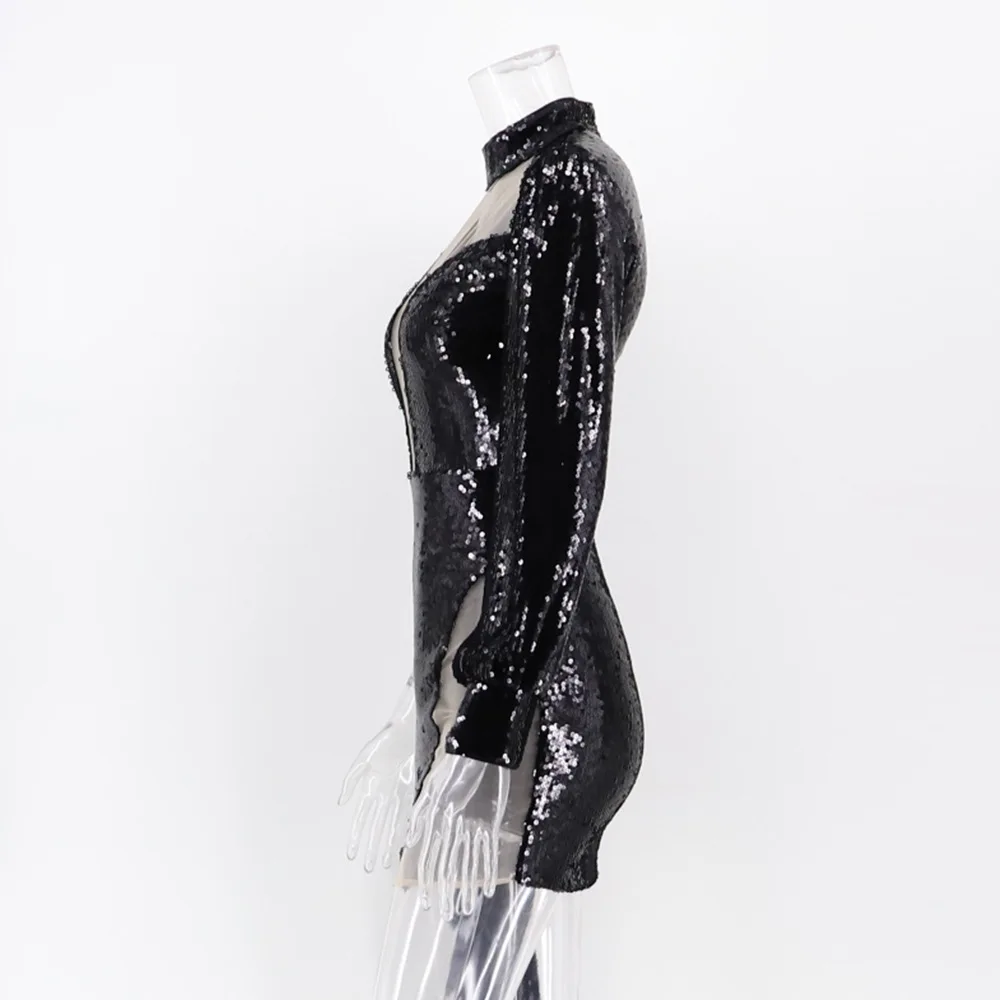 Fleepmart Sexy See through Club woman Summer sequin dress women party night glitter bodycon y2k vintage Black dress ladies dresses vestido