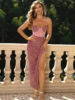 Fleepmart Sexy see through pink sequin summer dress women luxury mesh maxi birthday party dress elegant prom long evening dresses vestidos