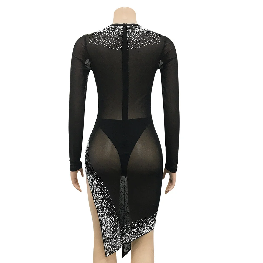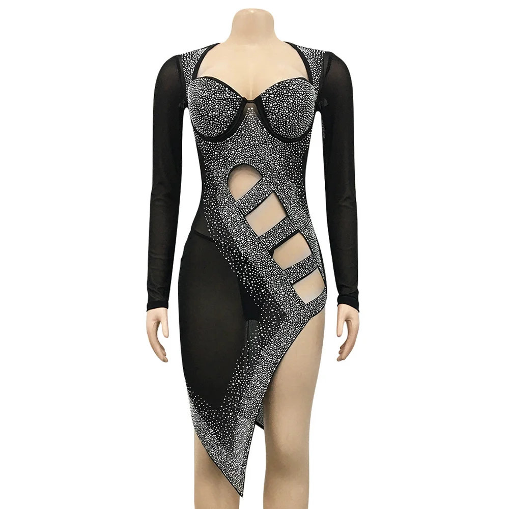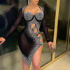 Fleepmart Sexy see through Rhinestone cut out club party vintage summer mini dress evening prom dresses for women 2021 black corset dress