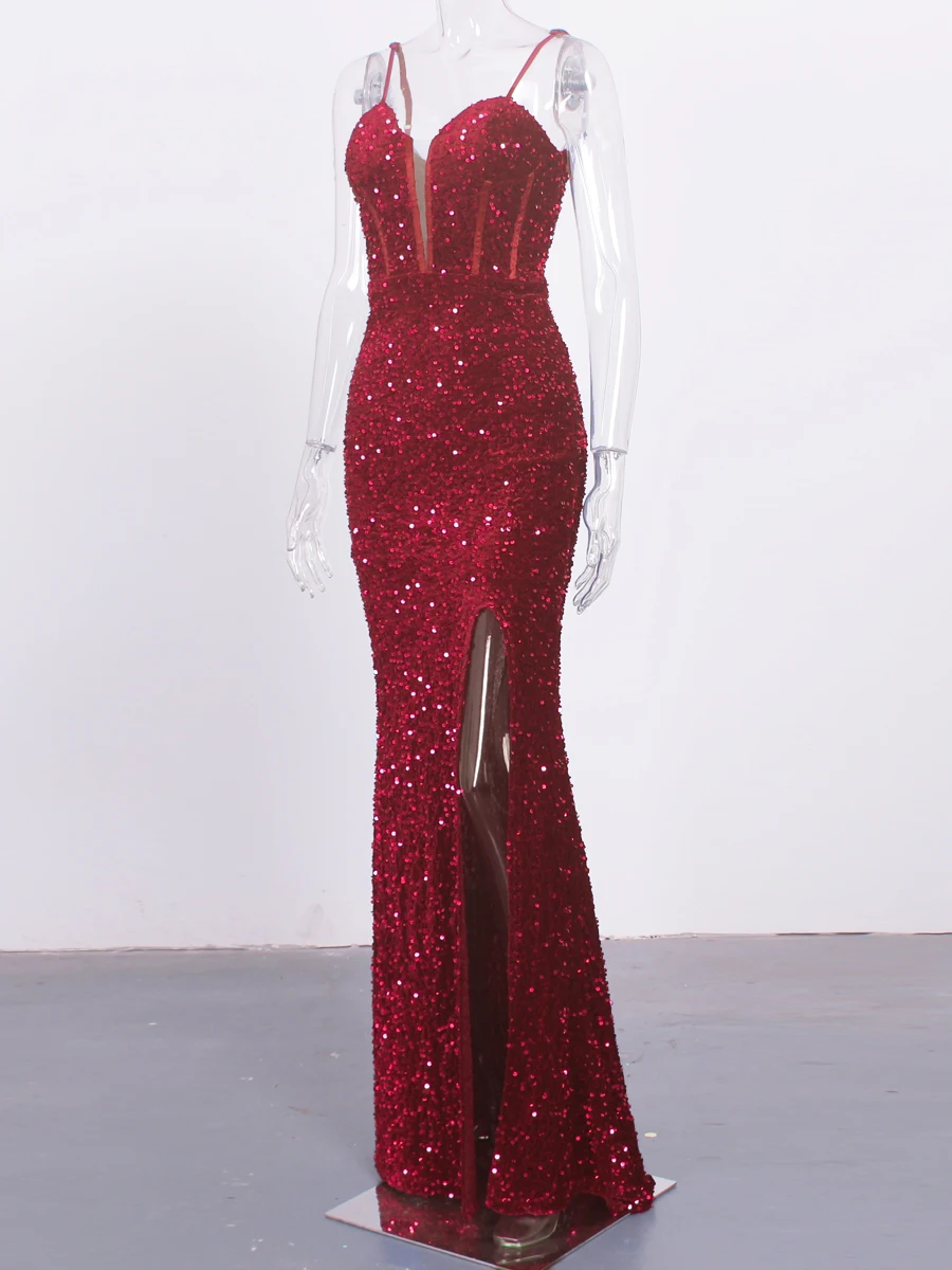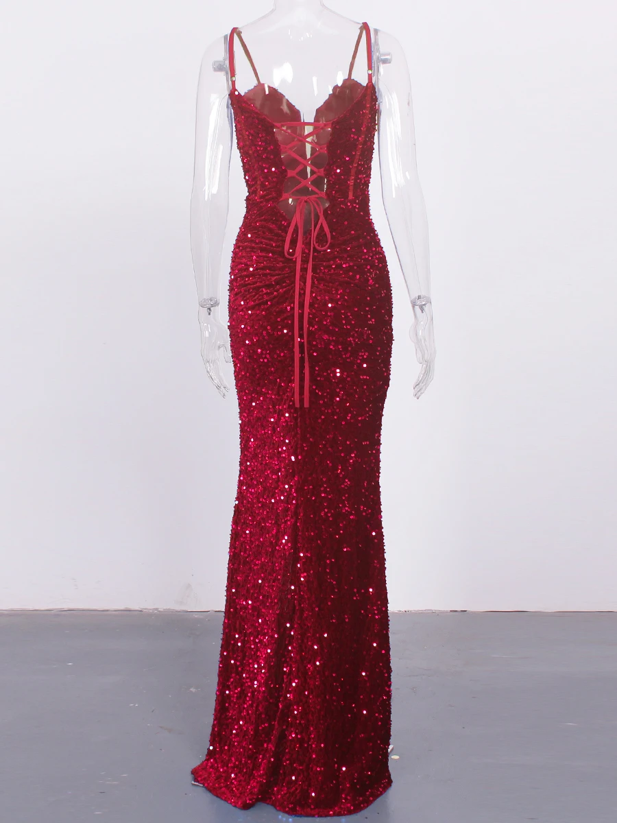 Fleepmart Sexy Sequin Slip Dress Corset Hollow Out Deep V Neck Front Slip Sleeveless Evening Party Gown Prom