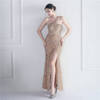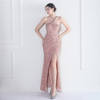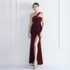 Fleepmart Sexy Slit Black Velour Sequin Evening Dress Women Slash Neck Party Maxi Dress Long Prom Dress