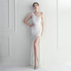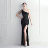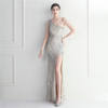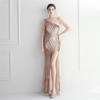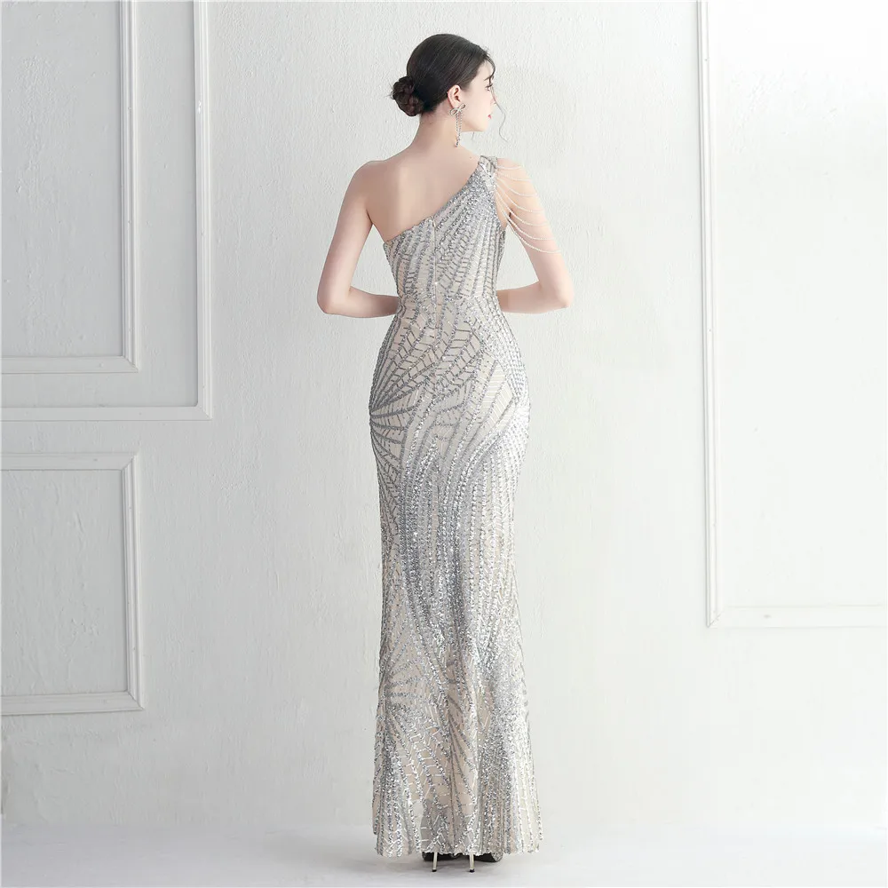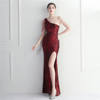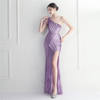 Fleepmart Sexy Slit Purple Sequin Dress Women One Shoulder Beading Long Evening Dress Party Maxi Dress
