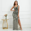 Fleepmart Sexy Slit Sequin Evening Dress Womens V Neck Party Maxi Dress Long Prom Dress
