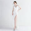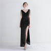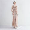 Fleepmart Sexy Slit Sequin Party Maxi Dress Women Long Prom Dress V Neck Beading Evening Dress