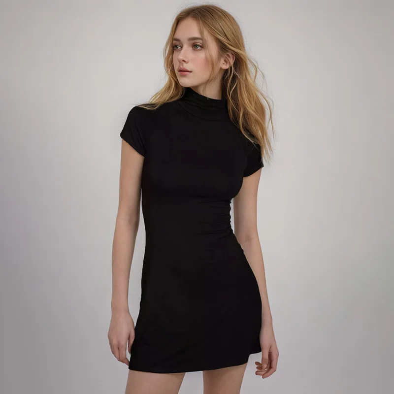 Fleepmart Sexy Solid Color Halter Neck Short Dress Shoulder Insert Design Bodycon Style Pure European And American Cross-Border Dress