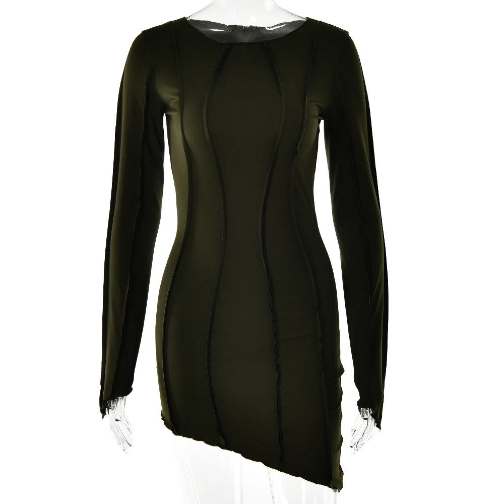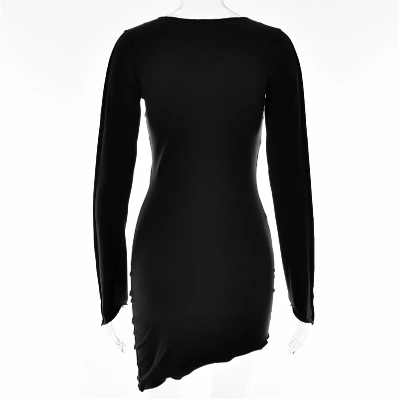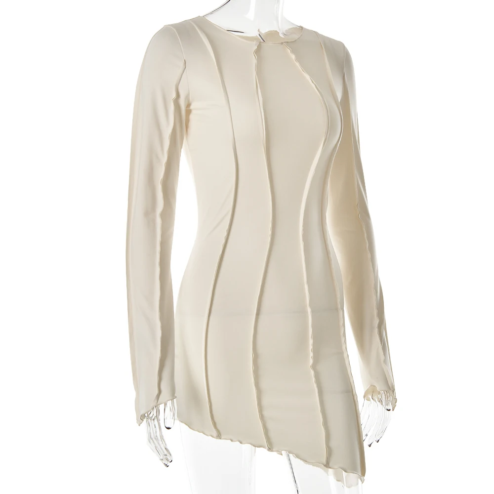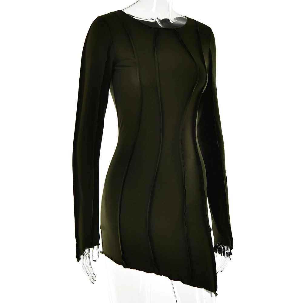 Fleepmart Sexy Solid Patchwork O Neck Mini Dress Women Autumn Bodycon Long Sleeve Slim Fit Elegant Party Club Vestido