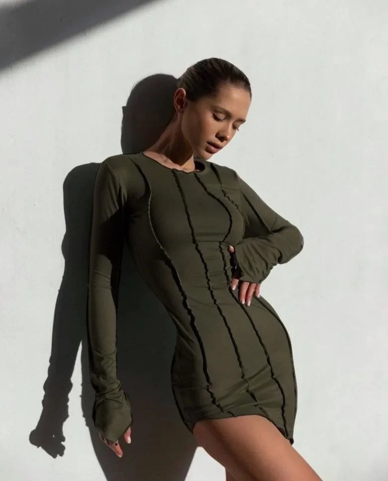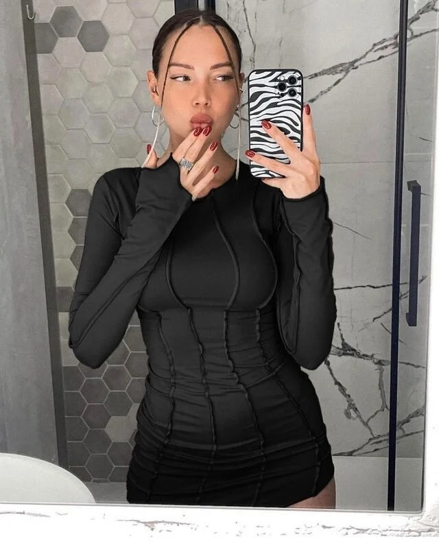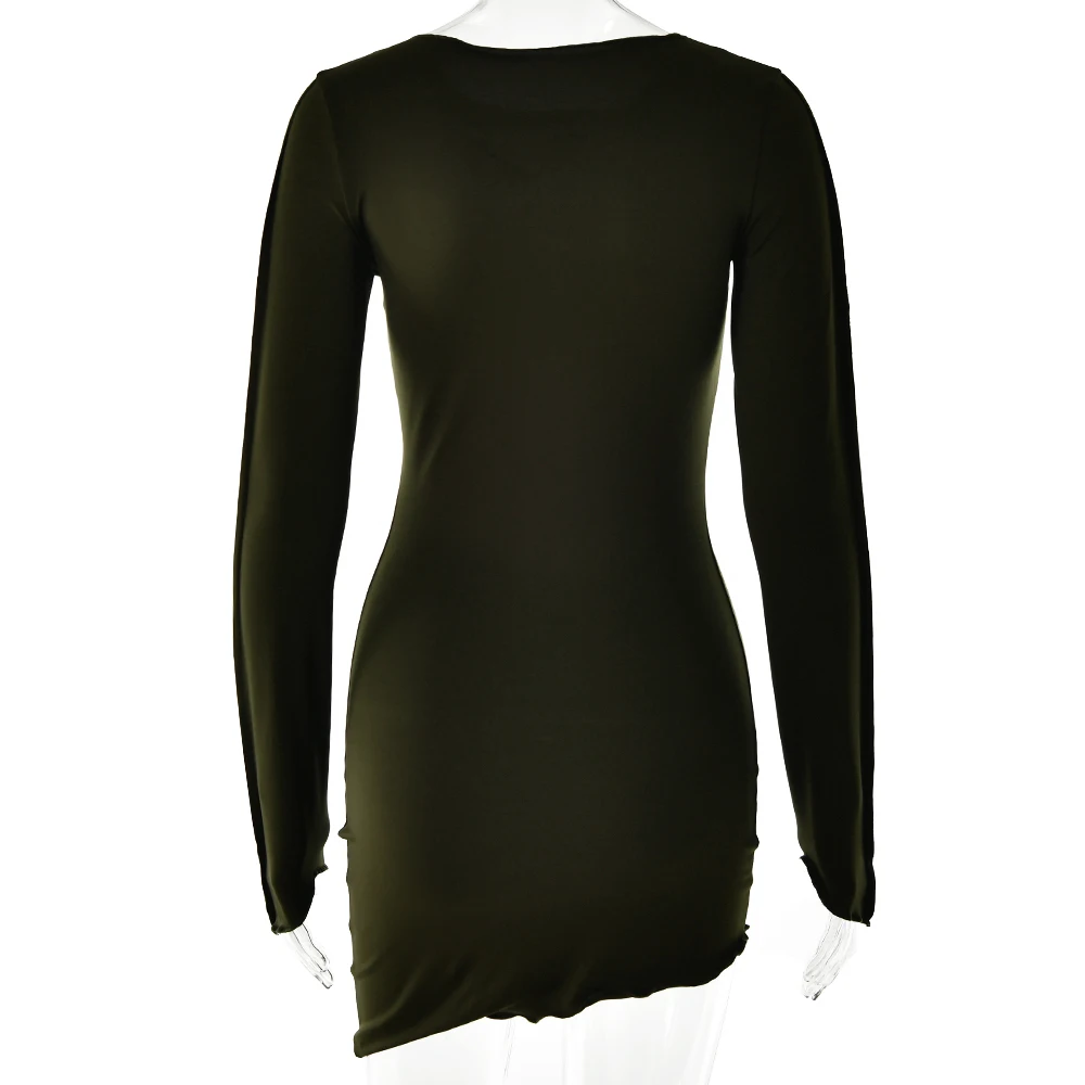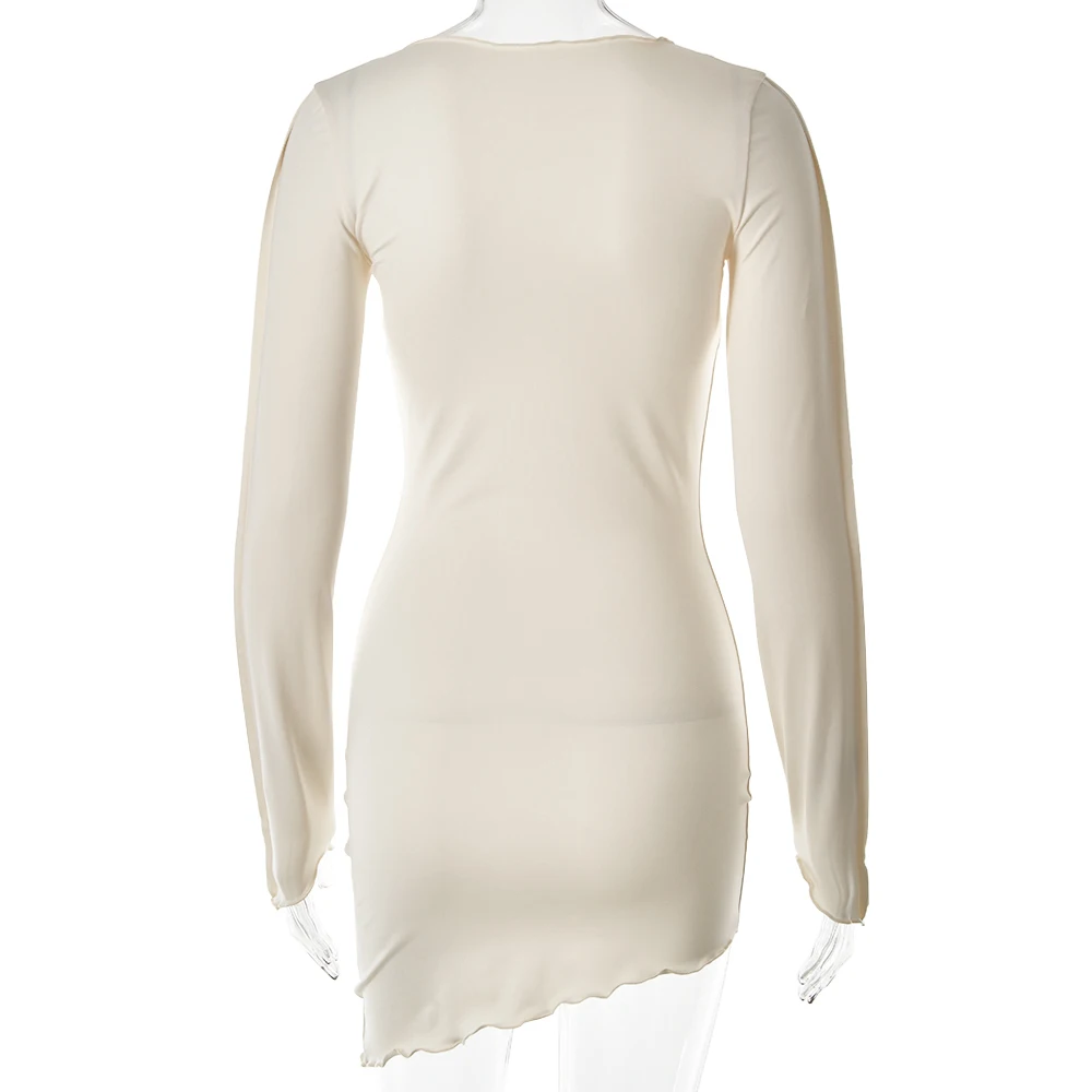 Fleepmart Sexy Solid Patchwork O Neck Mini Dress Women Autumn Bodycon Long Sleeve Slim Fit Elegant Party Club Vestido