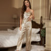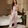 Fleepmart Sexy Solid Satin Pajamas Sets Sleeveless Loungewear Simple Breathable Sleepwear for Women