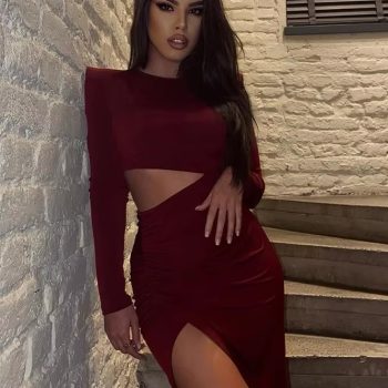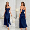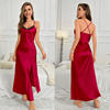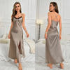 Fleepmart Sexy Split V -Neck Sleepwear Satin Nightgown Leisure Lace Hollow Out Lingerie Nightwear Women