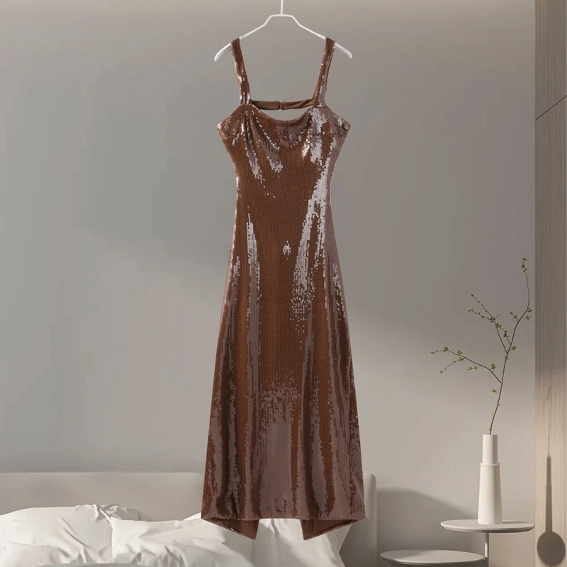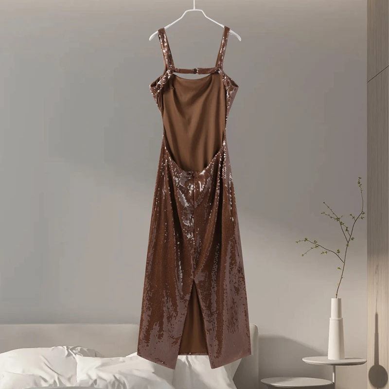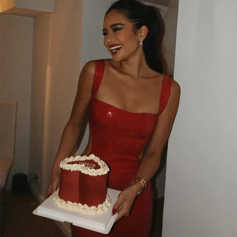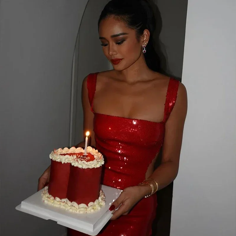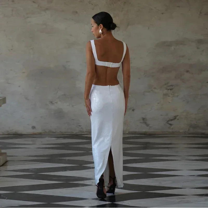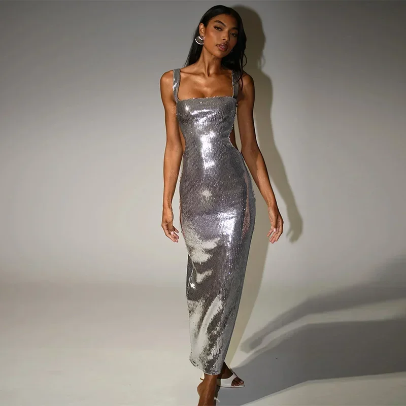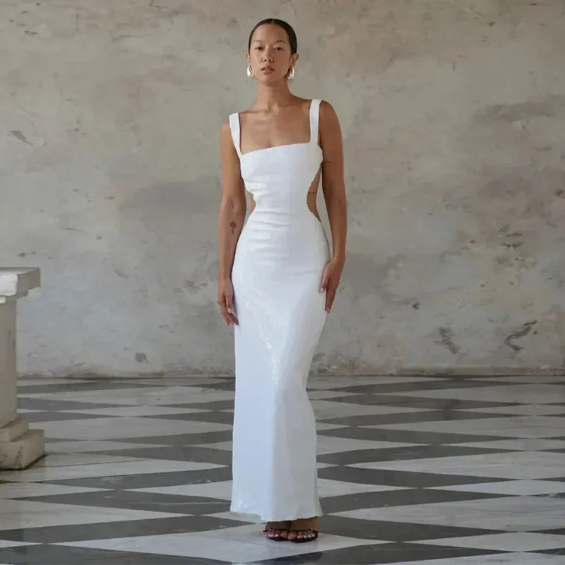 Fleepmart Sexy Square Neck Sling Long Dress Women Slim Sleeveless Backless Hollow Out Maxi Dresses 2025 Lady Party Christmas Gowns