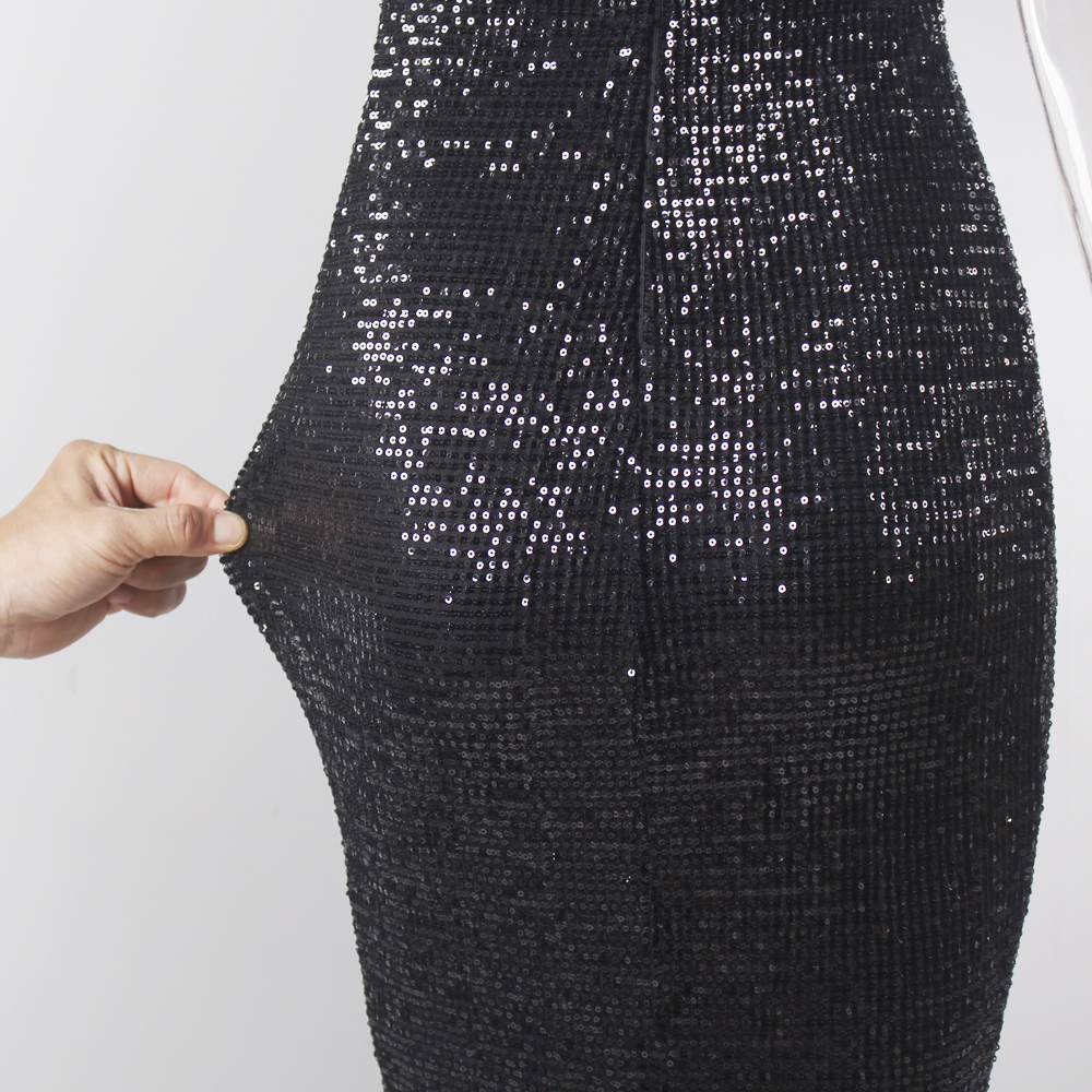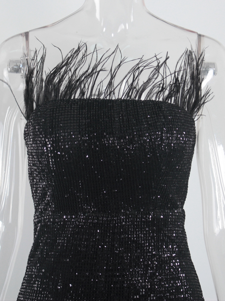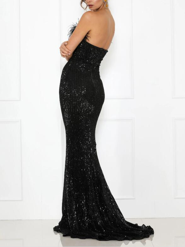 Fleepmart Sexy Strapless Black Long Evening Party Gown Mermaid Dress Floor length Sleeveless Feather Patchwork Sequin