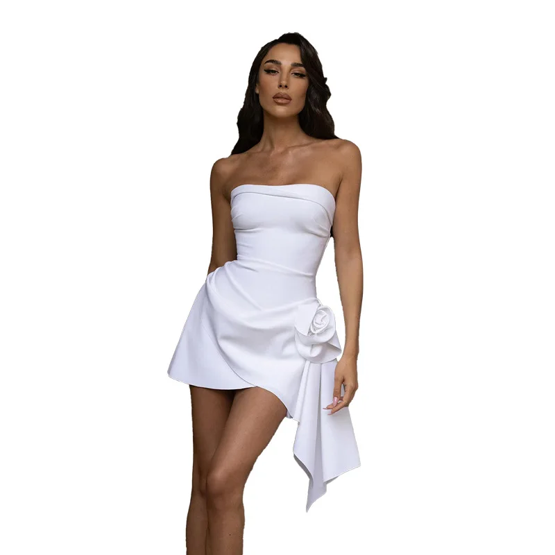Fleepmart Sexy Strapless Bow Tight Short Women Summer New Elegant Flower Party Evening Dress