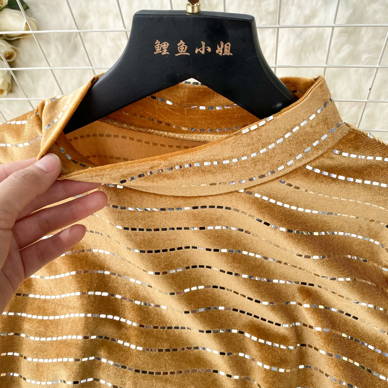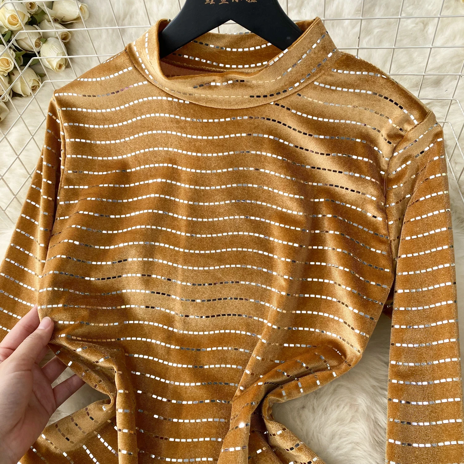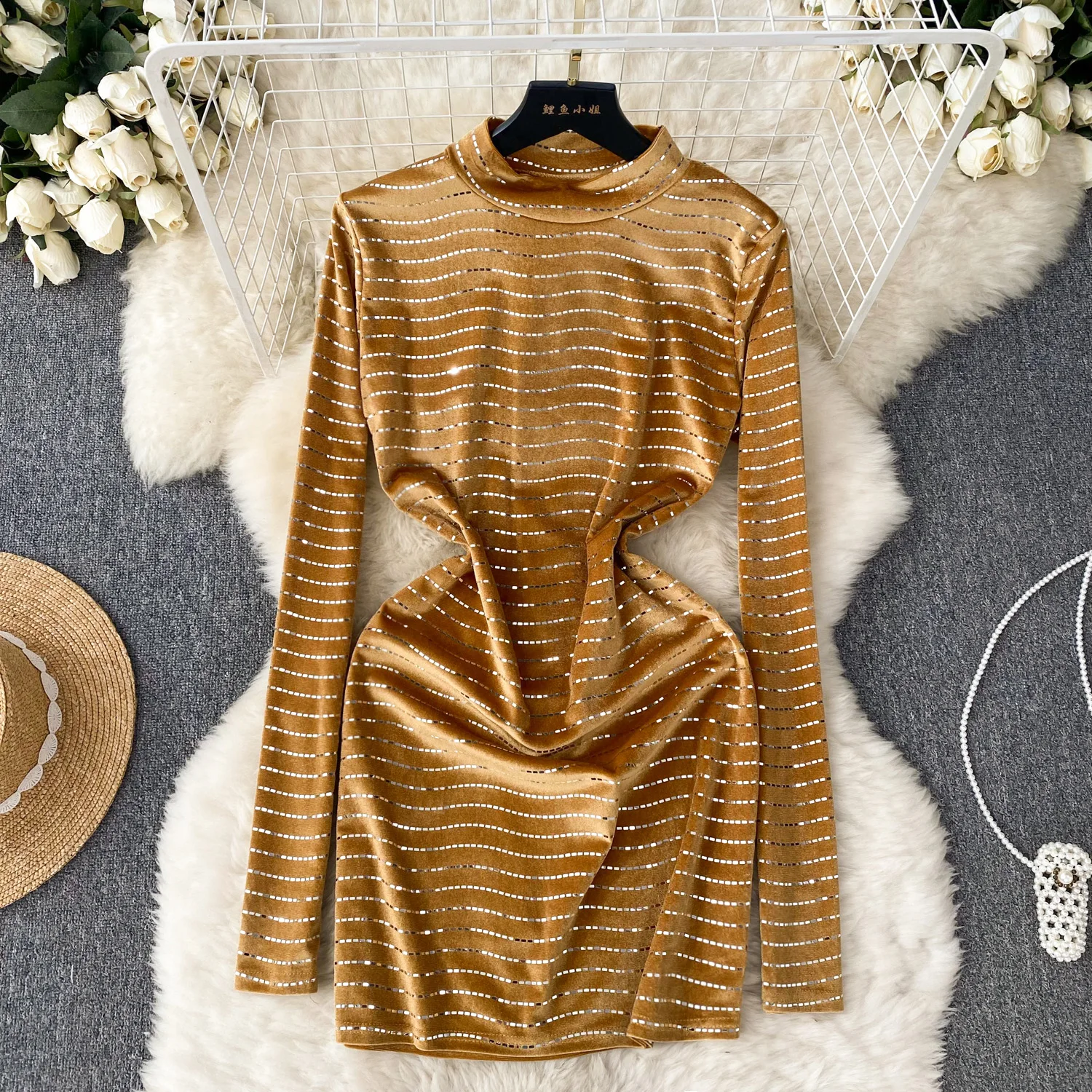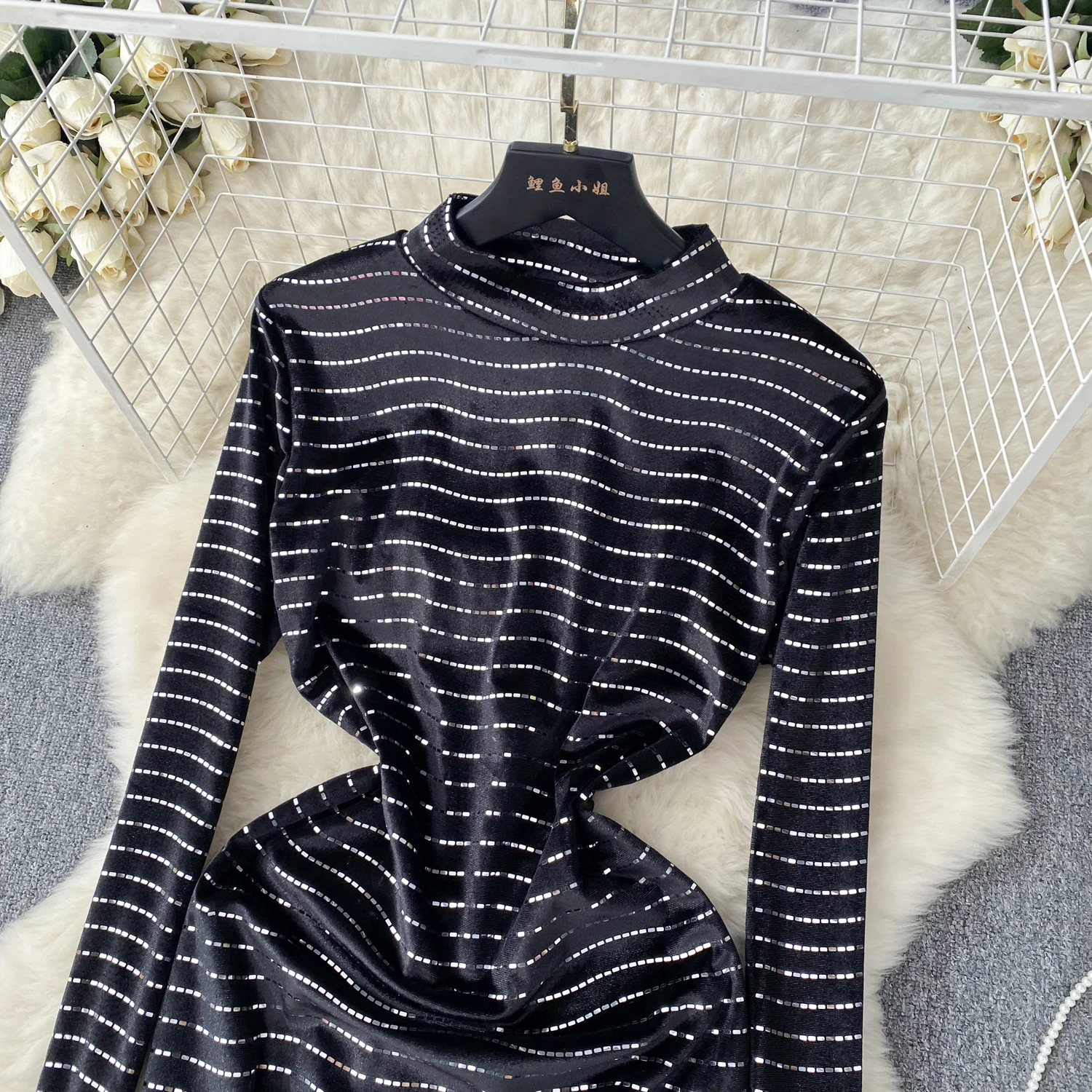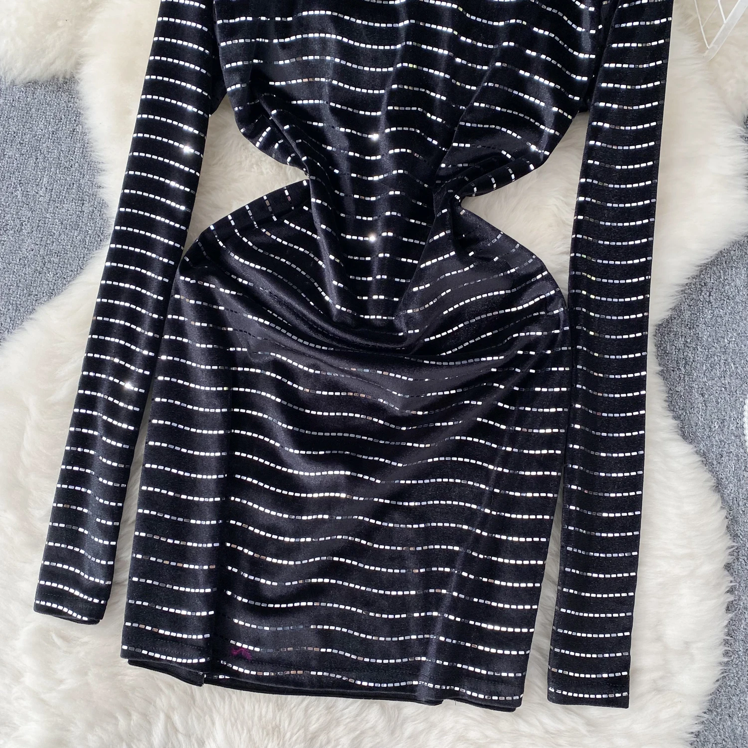 fleepmart Sexy Striped Sequin Velvet Long Sleeve Turtleneck Elastic Dress Spring 2024 Fashion Elegant Slim Bodycon Party Nightclub Dresses