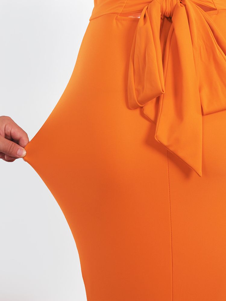 Fleepmart Sexy Summer Evening Party Dress Deep V Neck Halter Sleeveless Backless Sash Stretch Orange Yellow Long Gown