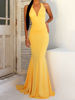 Fleepmart Sexy Summer Evening Party Dress Deep V Neck Halter Sleeveless Backless Sash Stretch Orange Yellow Long Gown