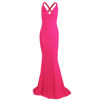 Fleepmart Sexy Summer Hot Pink Evening Party Mermaid Dress Deep Cowl Neck Cross Back Sleeveless Backless Sash Stretch Prom Gown