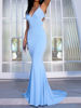 Fleepmart Sexy Summer Sky Blue Evening Party Mermaid Dress V Neck Lace Up Hollow Out Sleeveless Bodycon Stretch Prom Mermaid Gown