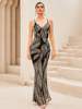 Fleepmart Sexy V-Neck Low Back Black Stretch Sequined Geometric Skinny Party Dress