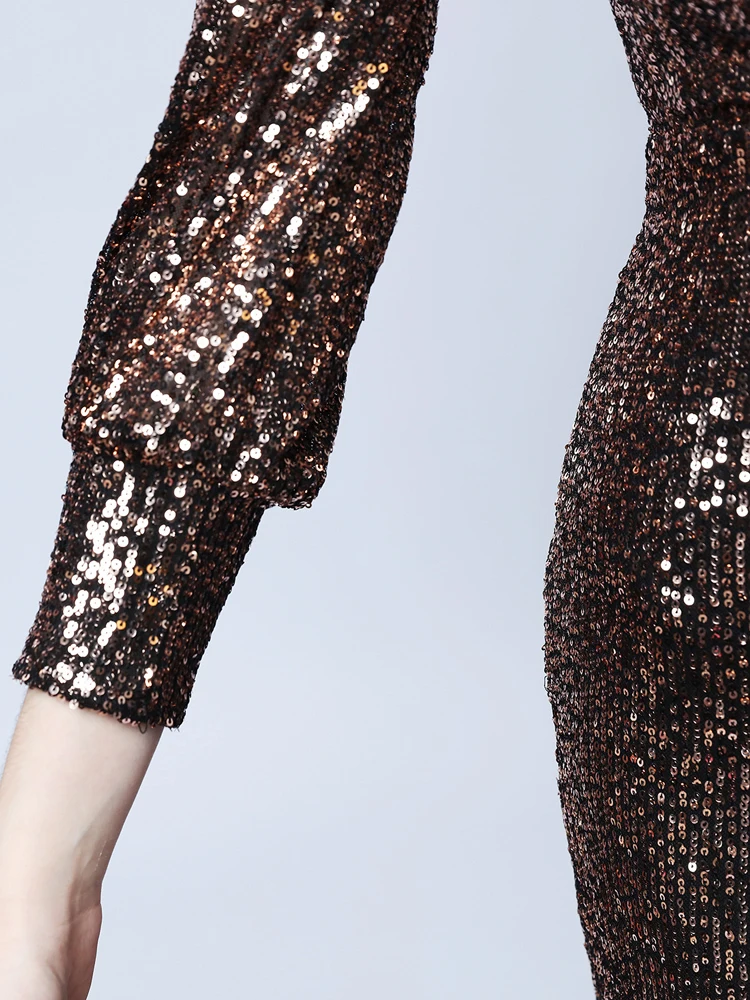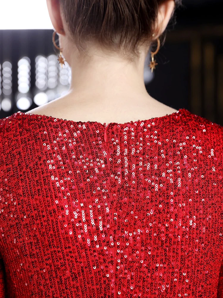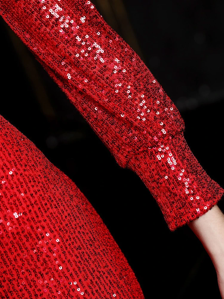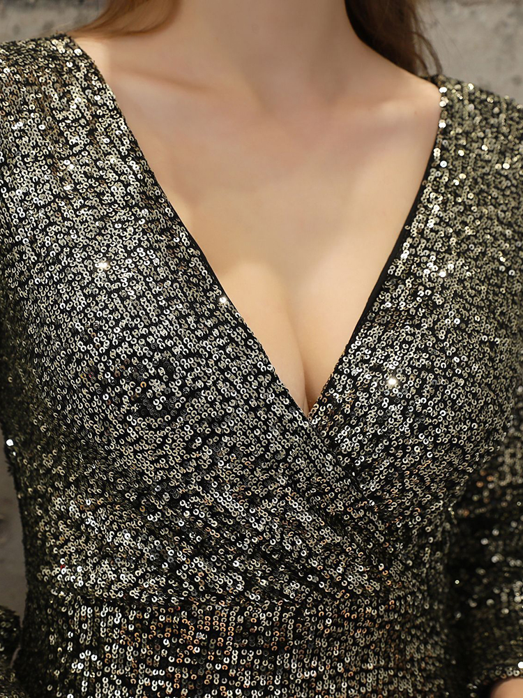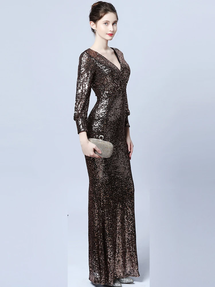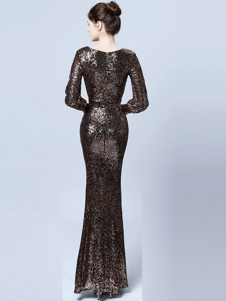 Fleepmart Sexy V Neck Mermaid Evening Dress Long Formal Prom Party Gown Full Sequin long Sleeve Galadress Vestidos Occassion Dress