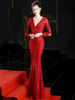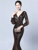 Fleepmart Sexy V Neck Mermaid Evening Dress Long Formal Prom Party Gown Full Sequin long Sleeve Galadress Vestidos Occassion Dress