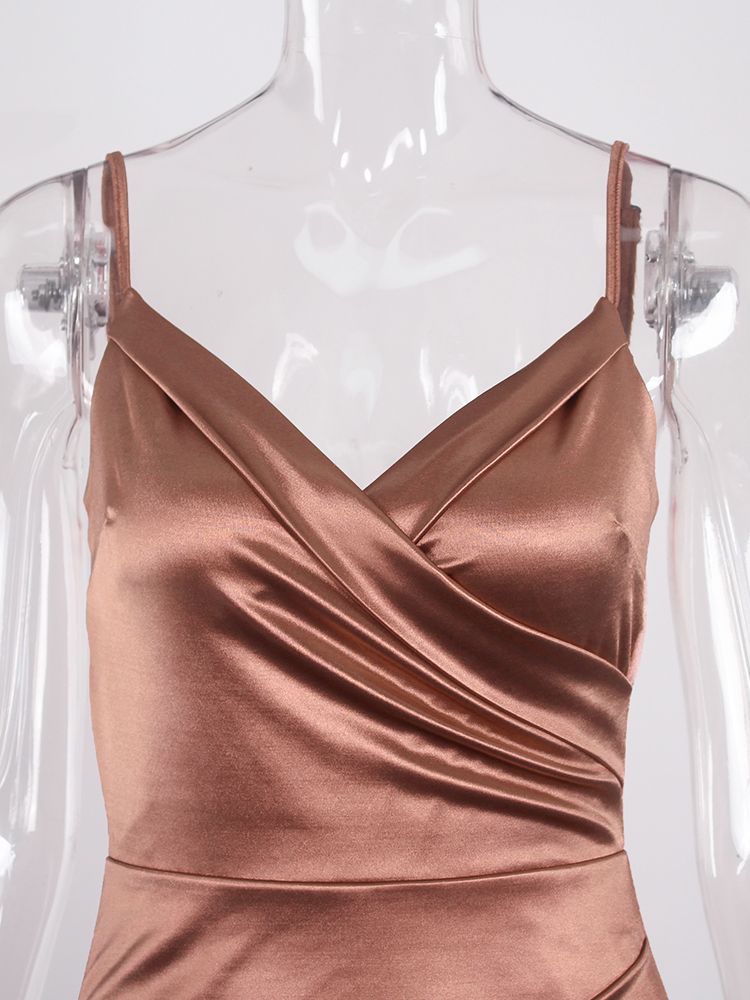 Fleepmart Sexy V Neck Sleeveless Satin Maxi Dress Stretchy Satin Bodycon Ruched Hollow Out Front Slit Backless Long Gown Summer Spring