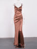 Fleepmart Sexy V Neck Sleeveless Satin Maxi Dress Stretchy Satin Bodycon Ruched Hollow Out Front Slit Backless Long Gown Summer Spring