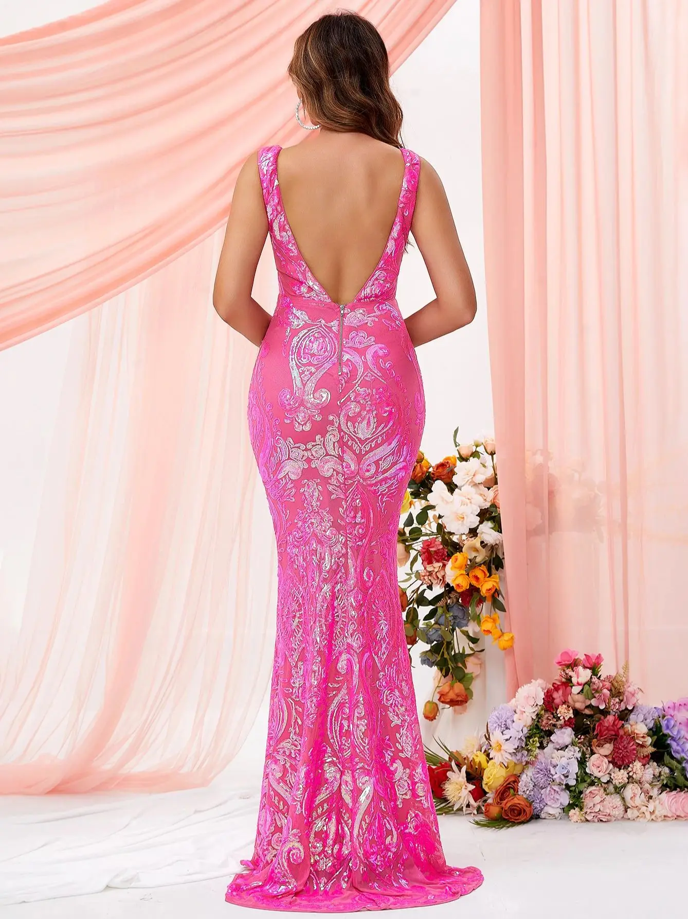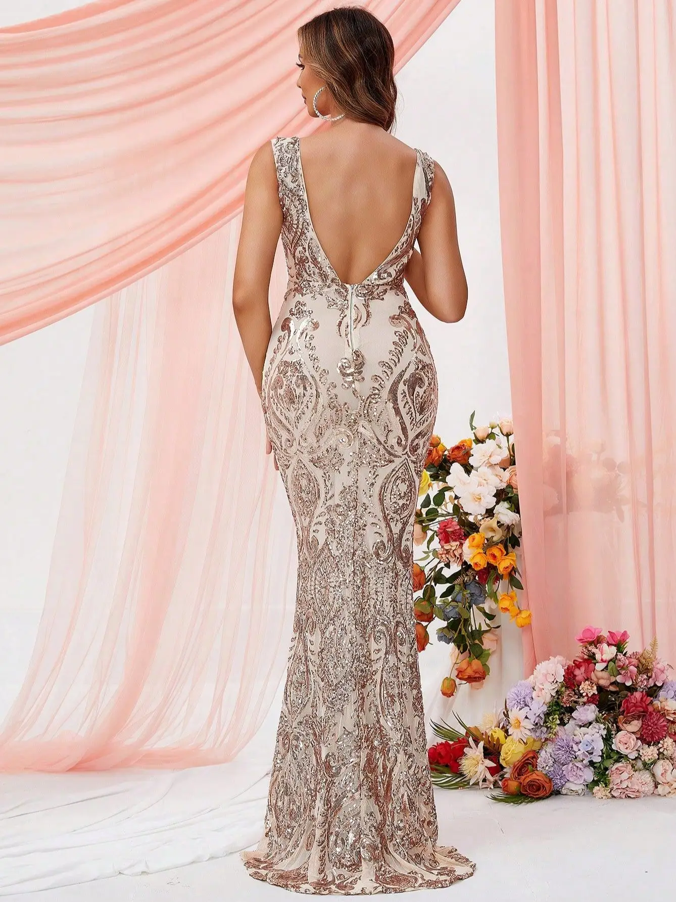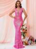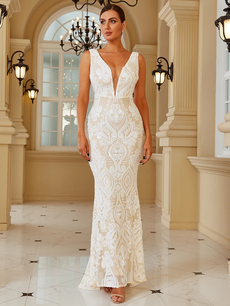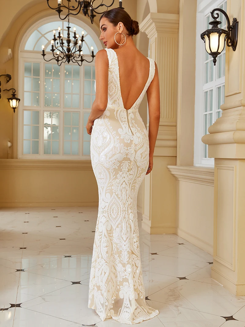 Fleepmart Sexy V-neck Sleeveless Sequin Fish Tail Evening Party Maxi Dress
