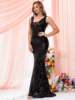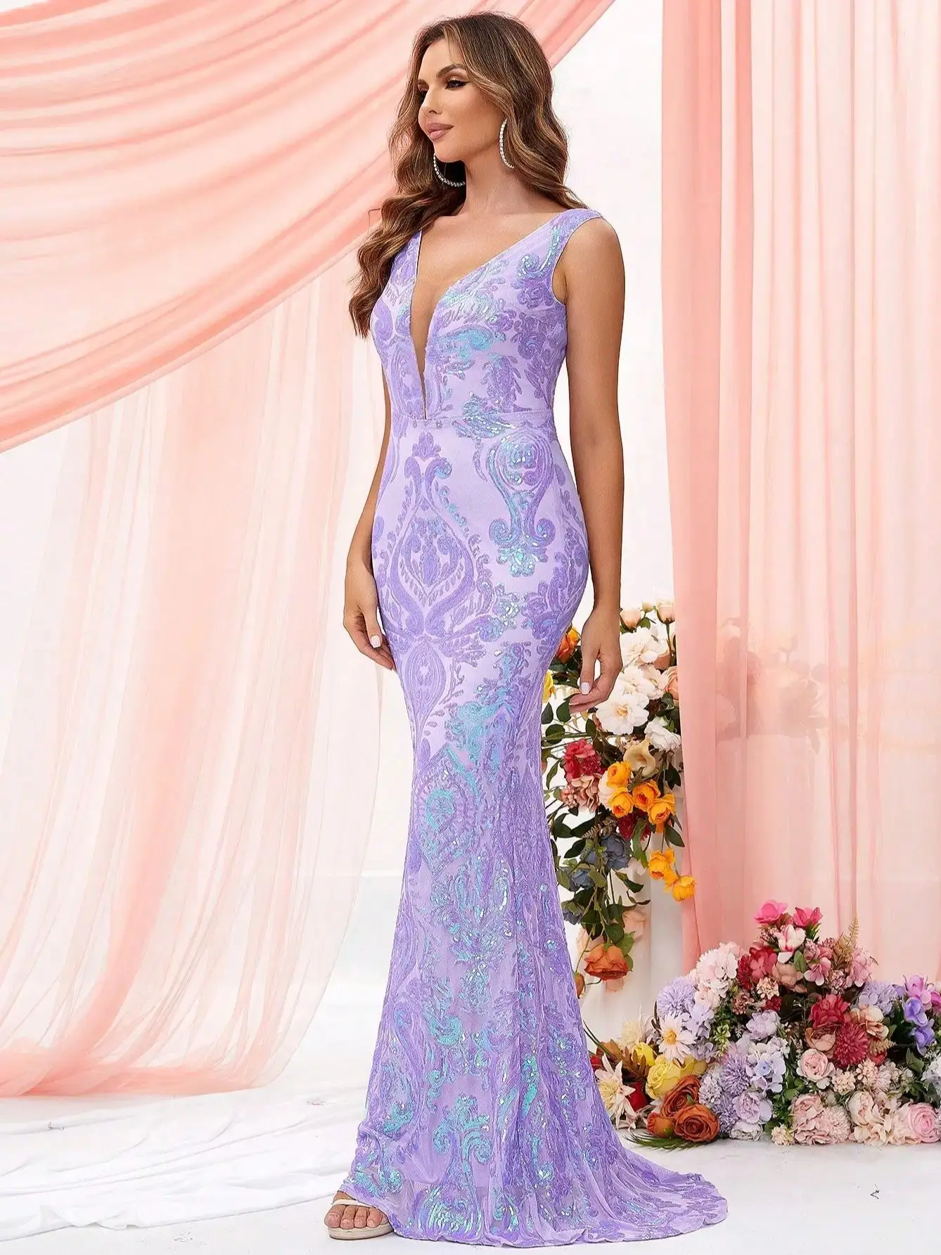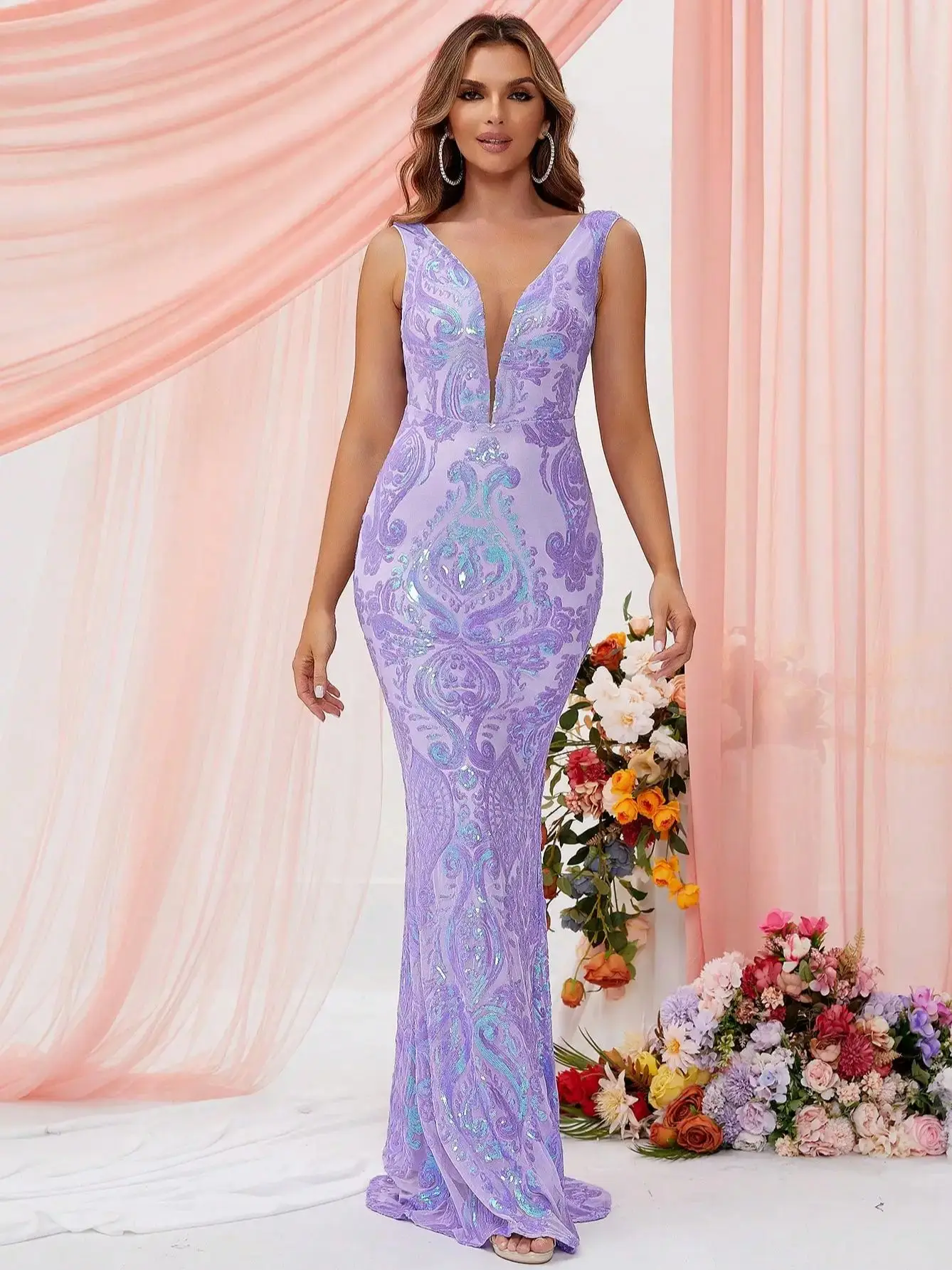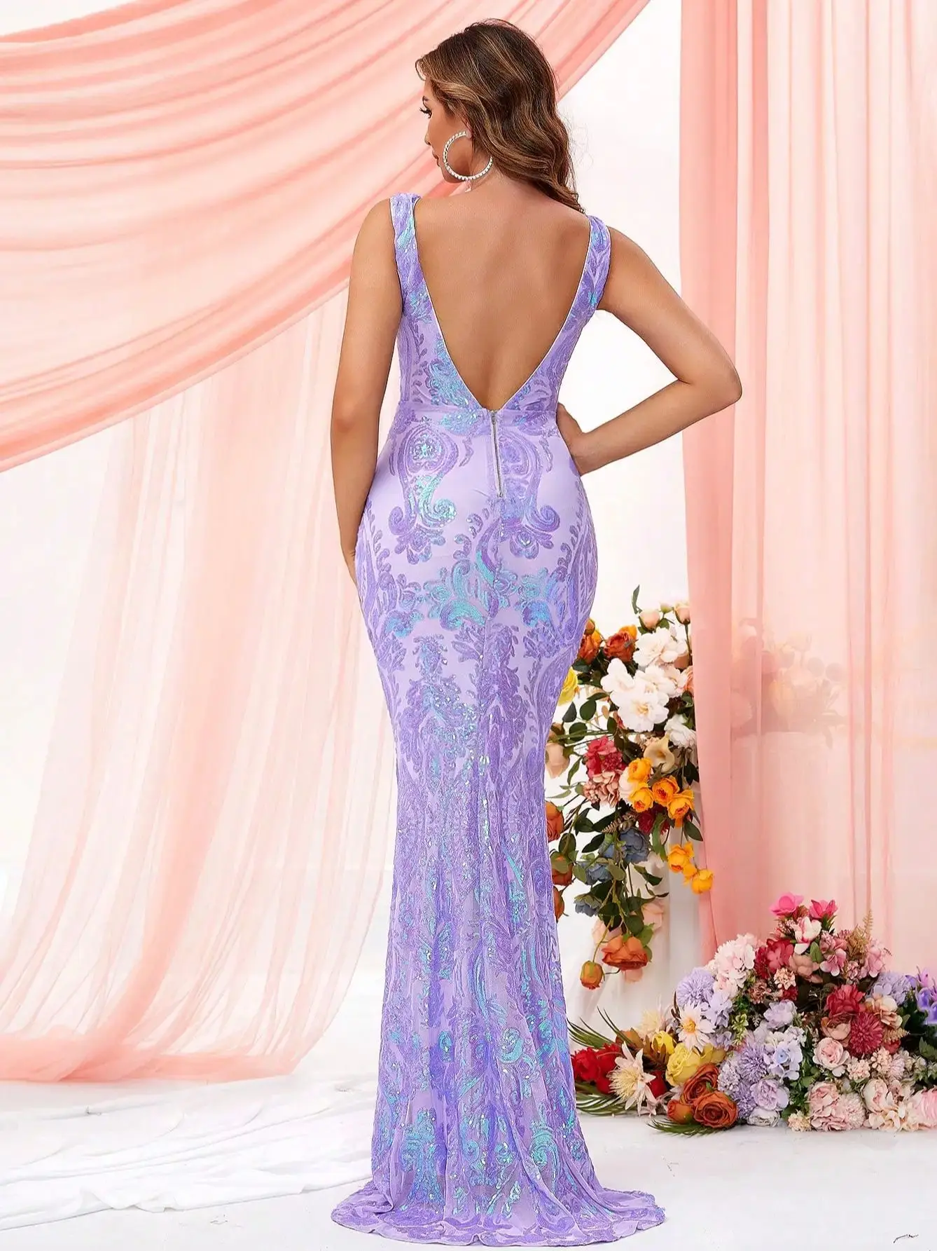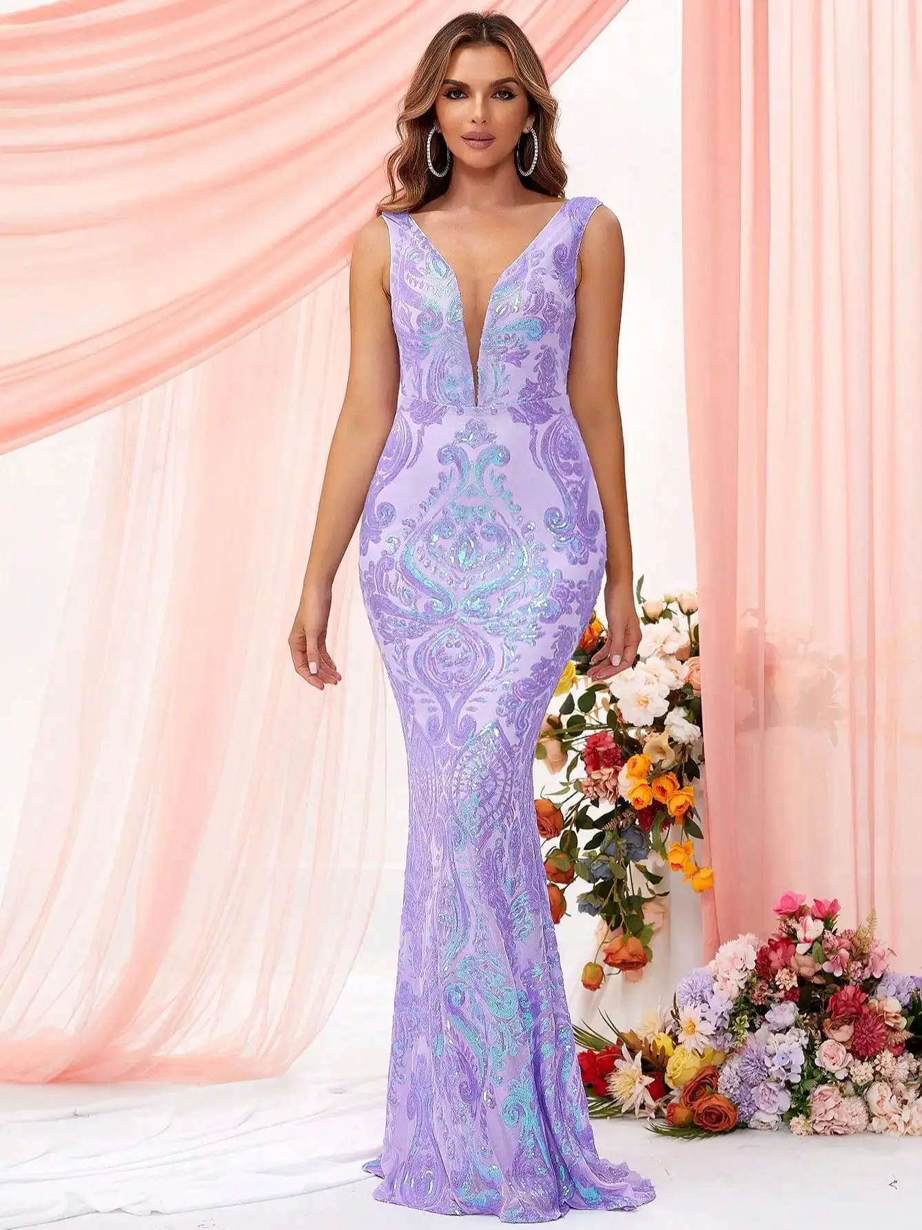 Fleepmart Sexy V-neck Sleeveless Sequin Fish Tail Evening Party Maxi Dress