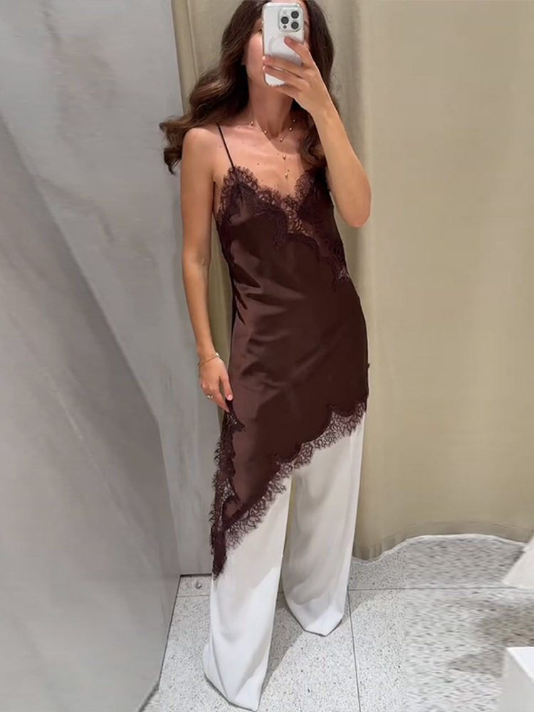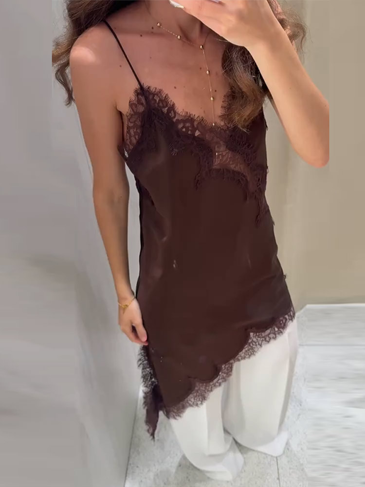 Fleepmart Sexy V-neck Sling Dress Women Fashion Sleeveless Lace Patchwork Irregular Mini Dresses 2025 Lady Summer Chic Casual Holiday Robe