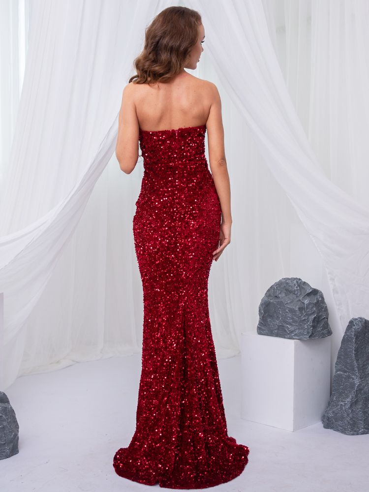 Fleepmart Sexy V Neck Strapless Spakles Stretch Sequin Party Dress Bodycon Mermaid Backless Short Lining Sleeveless Evening Night Dress