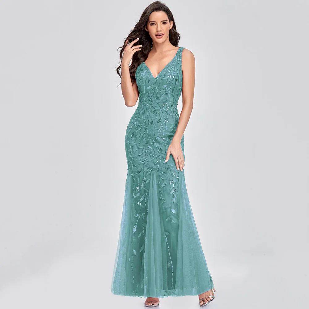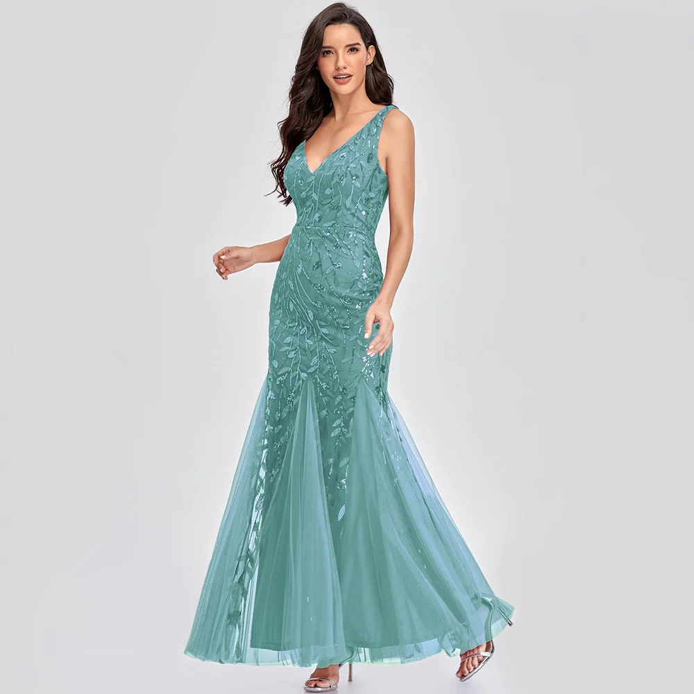 Fleepmart Sexy vintage Maxi sequin summer dress women 2024 elegant mesh wedding evening dress ladies long bridesmaid party dresses vestido