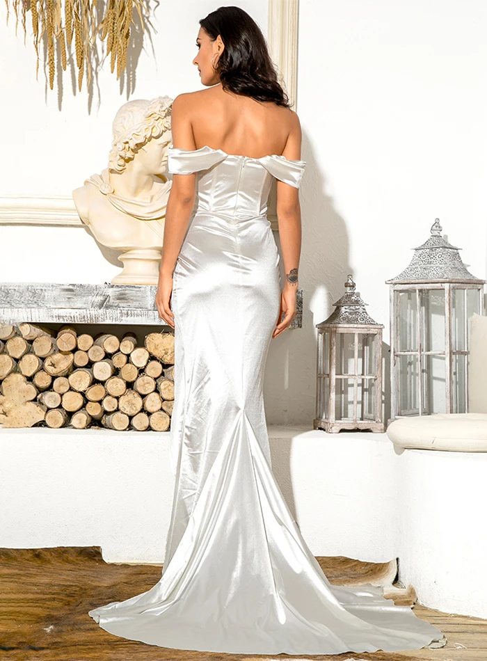 Fleepmart Sexy White Tube Top With Split Trailing Maxi Dress split 2021