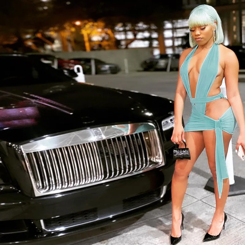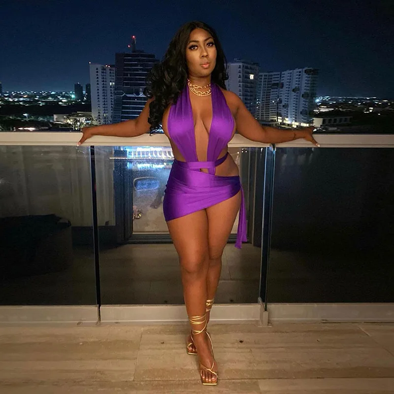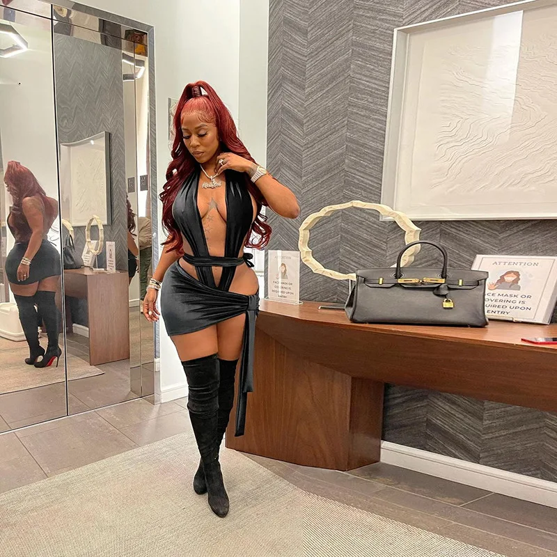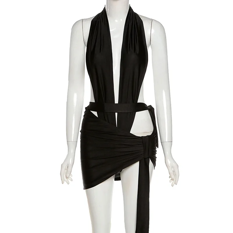 Fleepmart Sexy Women 2 Piece Set Bandage Mini Skirt Halter Tops Night Club Party Backless Summer Hollow Out Ruched Femme Set 2022