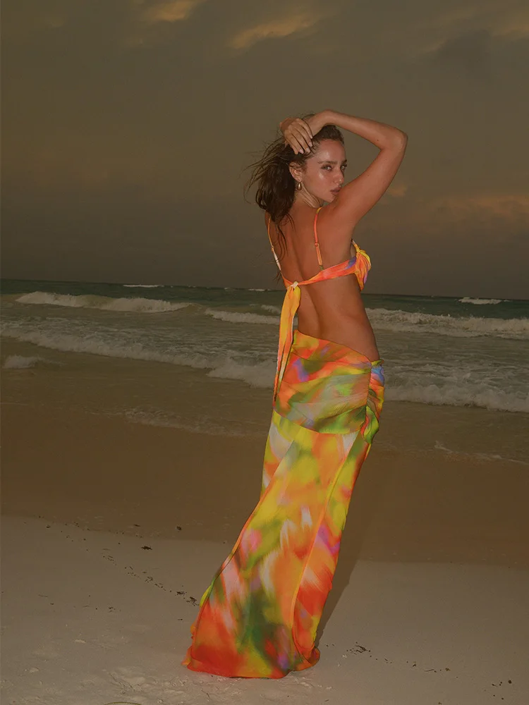 Fleepmart Sexy Wrap Around Cover Up Cut out Mesh Cover-ups Print Beach Long Beathing Suit Beachwear Women Maxi Beach