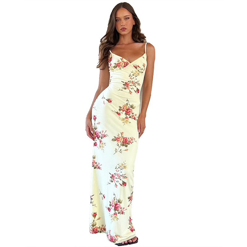 Fleepmart Sexy Y2K Clothes Floral Print Sleeveless Backless Bodycon Maxi Dresses For Women 2024 Club Birthday Party Elegant Outfit