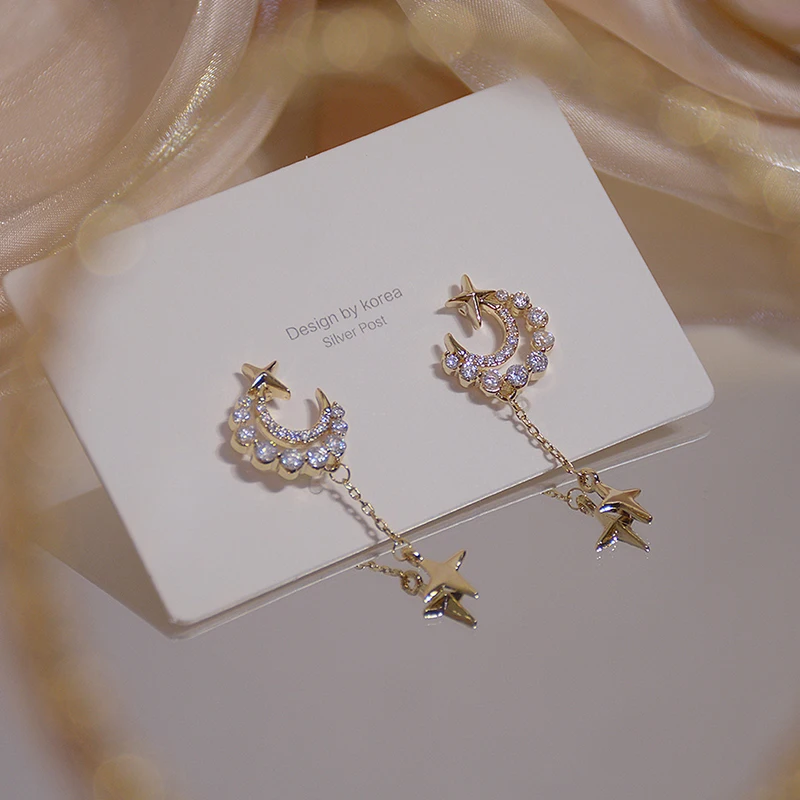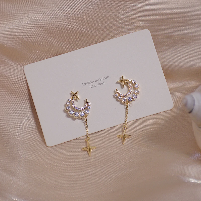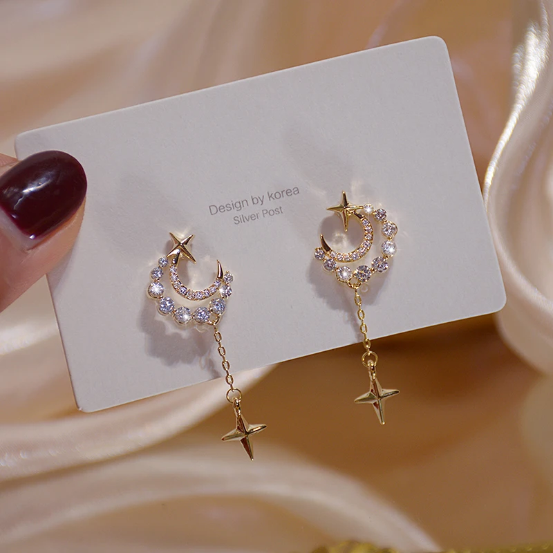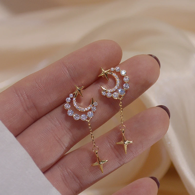 Fleepmart Shine Exquisite Zirconia Moon Earring for Women AAA Zircon CZ Tassel Stud Earring Wedding Jewelry Pendant Birthday Gift