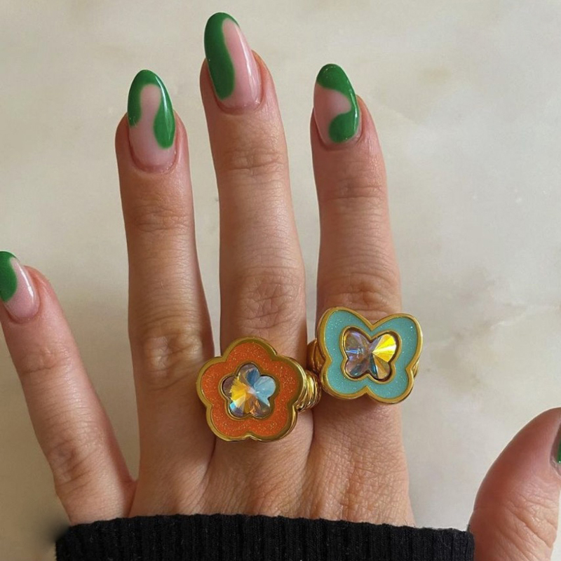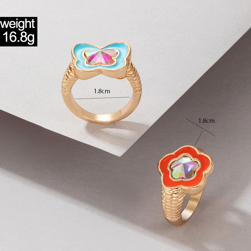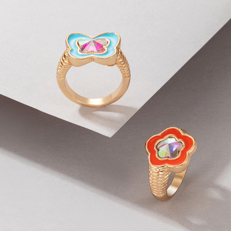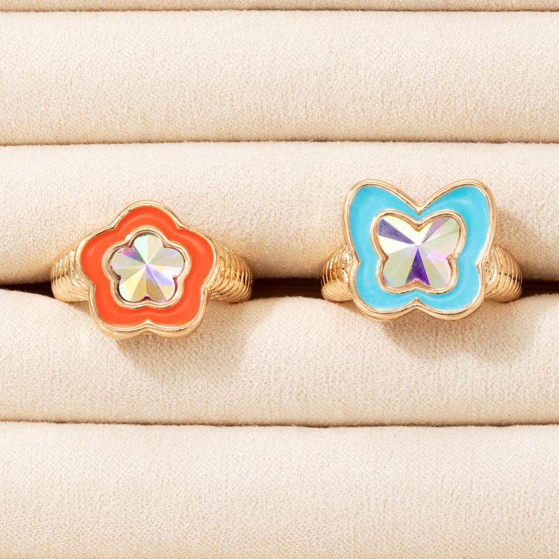 Fleepmart Shiny Crystal Stone Pretty Flowers Butterfly Joint Ring Sets for Women Gold Alloy Metal Jewelry Anillo 2pcs/sets