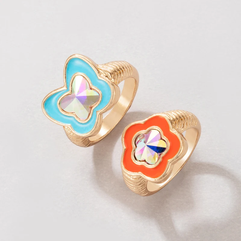 Fleepmart Shiny Crystal Stone Pretty Flowers Butterfly Joint Ring Sets for Women Gold Alloy Metal Jewelry Anillo 2pcs/sets