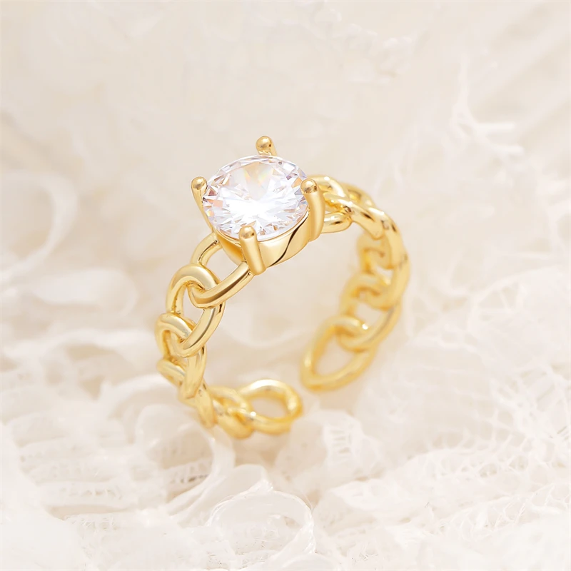Fleepmart Shiny Cubic Zirconia Crystal Ring for Women Wedding Bridal Ring Open Design Adjustable size Chain Style Circle Ring Her Gifts